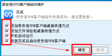 6、安装完成,自行选择以下勾选项,建议选择添加奇安信VPN客户端桌面快捷方式。