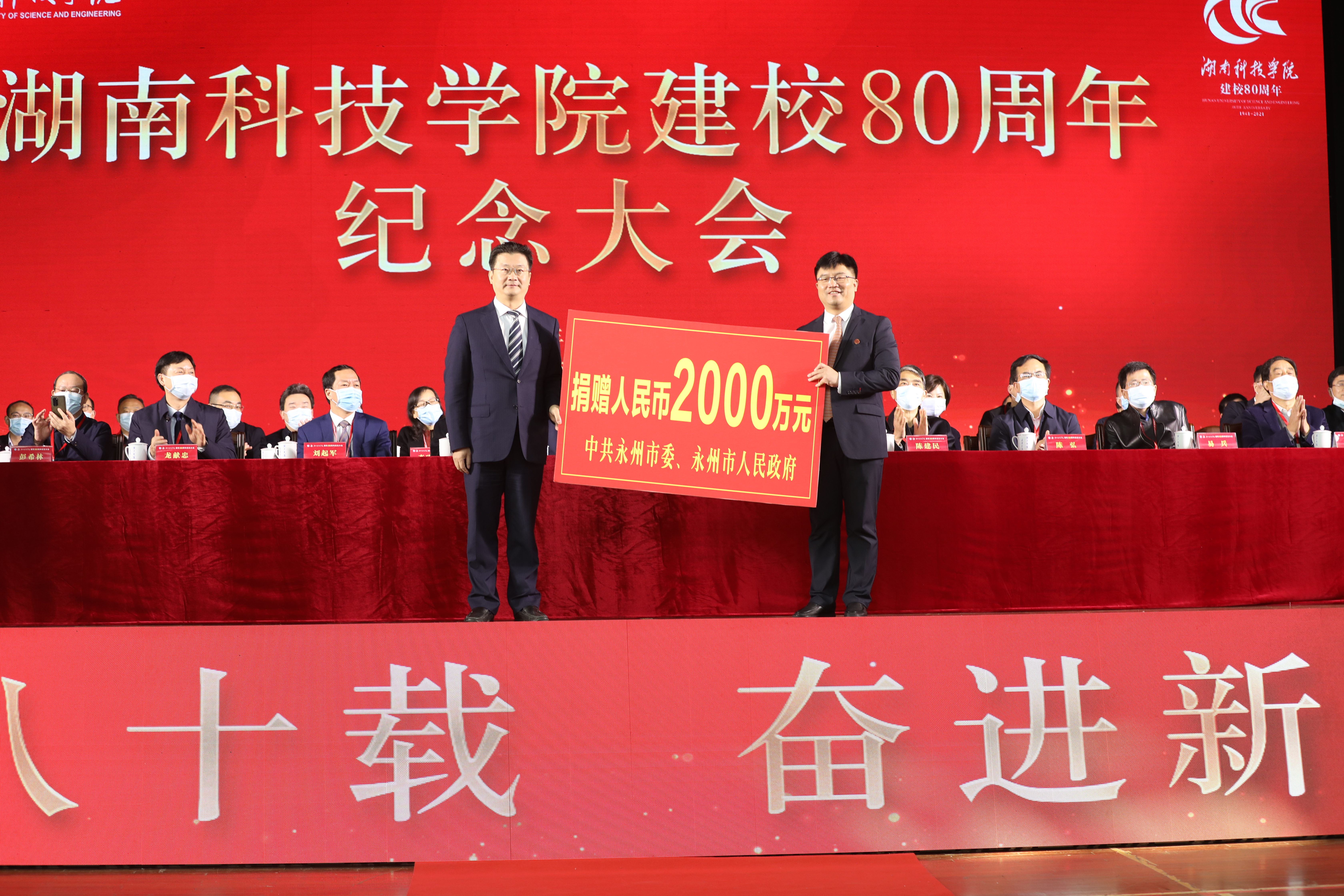 本网讯(记者 宁央贝 余佳佳)弦歌不辍八十载,薪火相传谱华章。12月11日,学校建校80周年纪念大会在体育馆隆重举行。湖南省教育厅党组成员、副厅长、省委教育工委委员左清,中共永州市委副书记、代市长陈爱林,副市长谢景林出席大会。全体校领导、党委委员,地方政府代表,兄弟学院代表,校友代表与在校师生共一千二百余人欢聚一堂,共襄盛典。