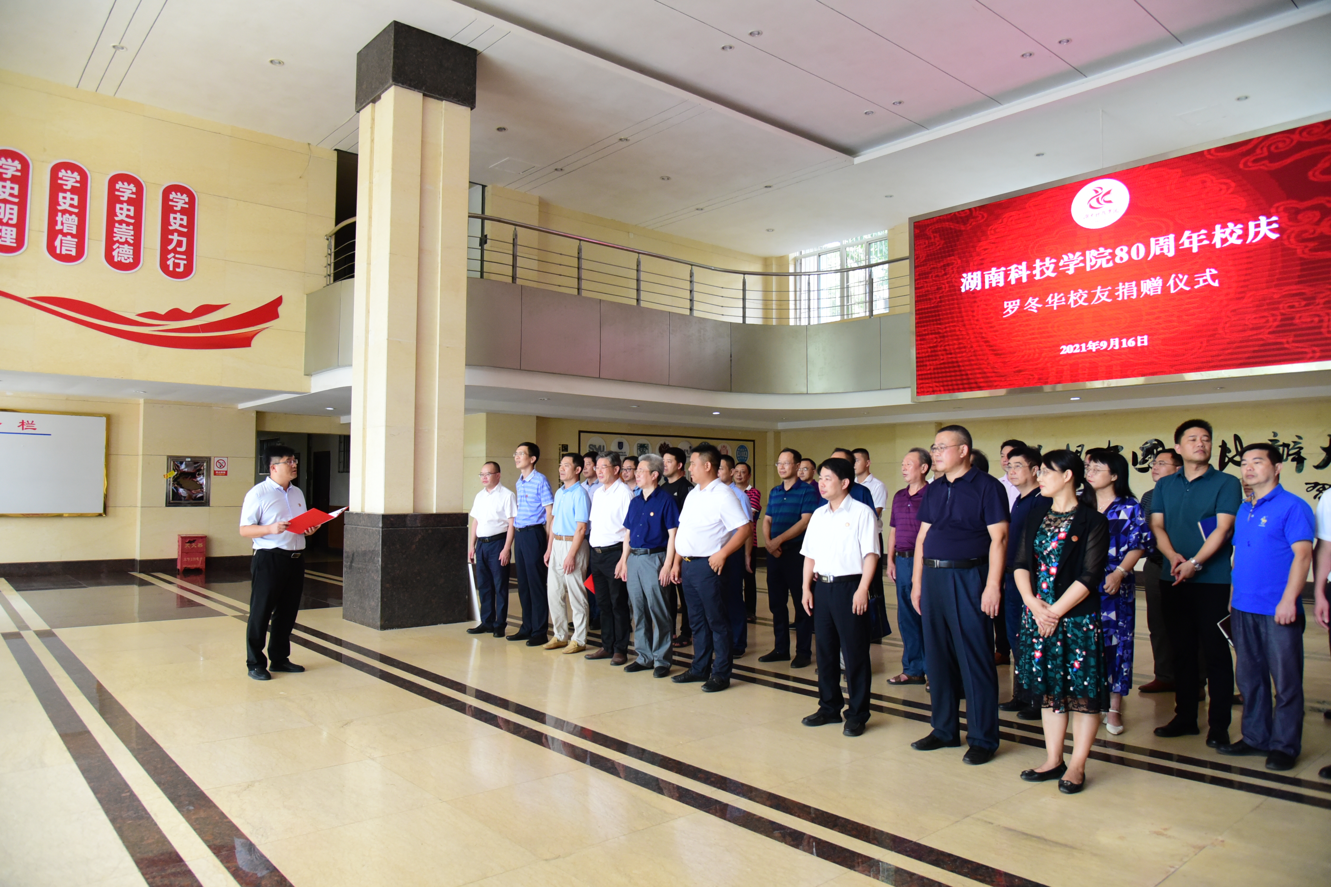 李钢代表学校全体师生向罗冬华表示热烈的欢迎,他表示,罗冬华校友克服疫情交通不便,带着深情厚谊回到母校,用实际行动表达对母校的真爱,虽受疫情影响,他依旧克服困难,为母校捐赠50万元,这是目前第一笔大额度个人校庆捐款,学校会铭记罗冬华校友的大力支持,将50万元资金用于校史馆建设。校史馆是学校办学思想不断发展的源泉,是学校文化建设的重要内容,是开展校史教育、爱校荣校教育的重要基地。希望全国各地的校友像罗冬华一样,积极响应伟德源自英国194680周年校庆捐赠倡议,迅速行动起来,为学校高质量发展添能蓄力。