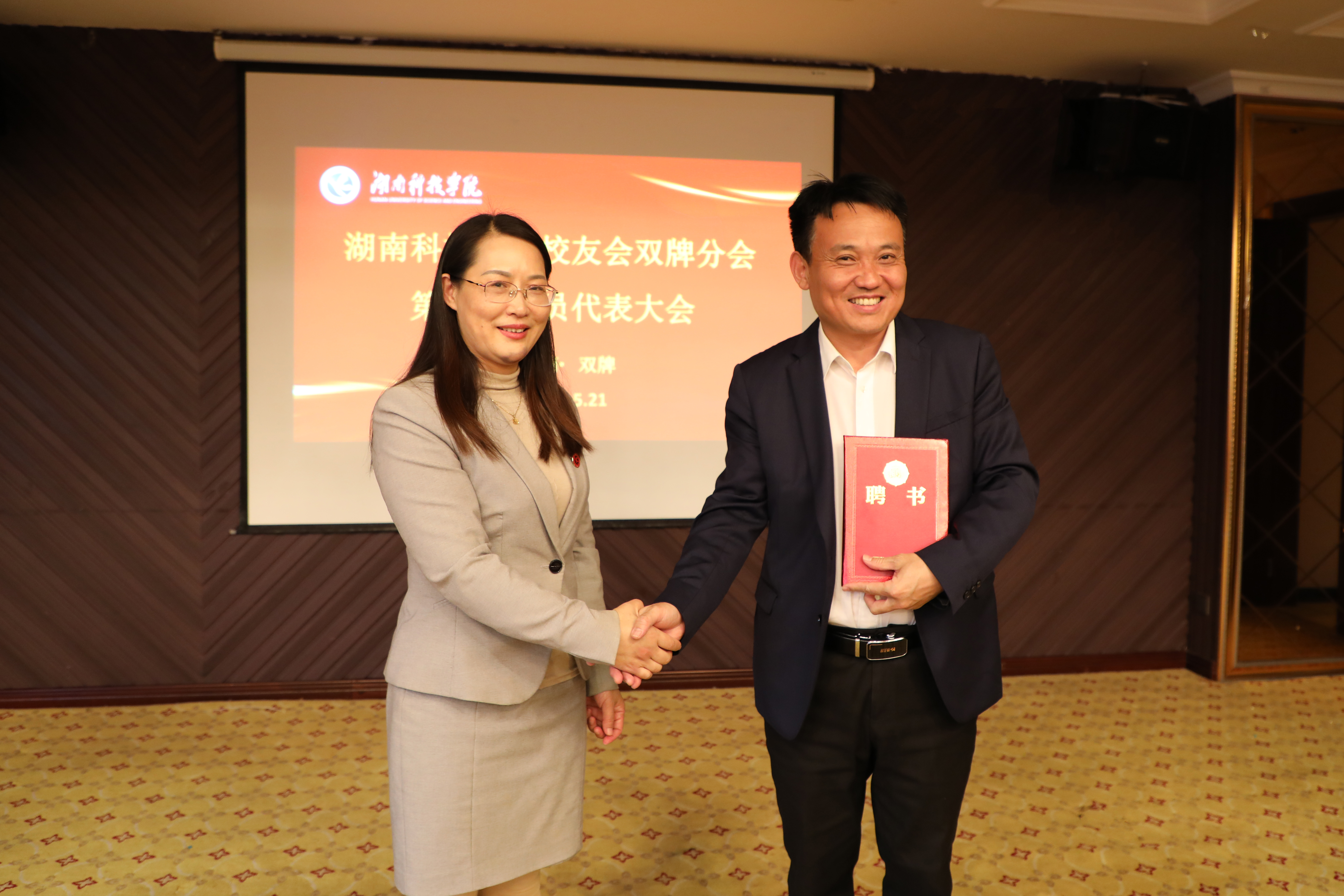 大会选举产生了双牌校友分会第二届理事会,何江鸿、杨敏任顾问,蒋渊明任名誉会长,夏雨任会长,王祥仁、张居龙、胡佐军、唐德铭、唐耀东、黄少军、黄明强、蒋小华、蒋建华任副会长,周泽黎为秘书长。