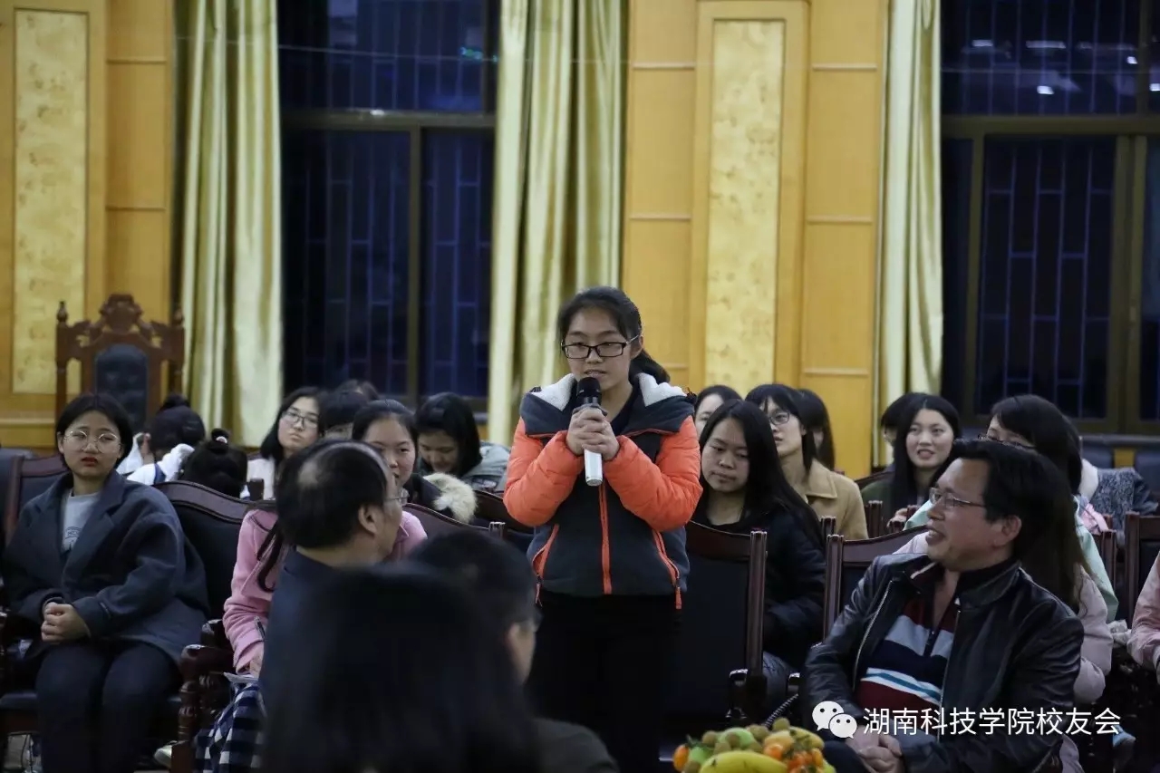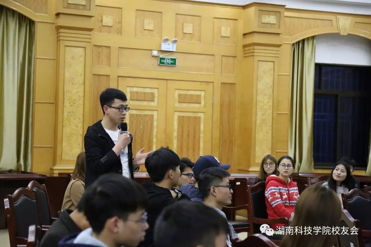 活动采取面对面的座谈会方式。校友们坐在报告厅中央,学生代表围成圈坐在校友周围,这种独特的方式拉进了校友与在校学生的距离,活动氛围轻松,谈话亲切。七位校友离校多年但仍心系母校,此次返校纷纷感慨母校变化。活动中,几位校友向在校生讲述他们当年在母校的求学经历,并分享他们在校时的趣事。在提问环节,校友们为在校学生解答了一些学习、生活、就业方面的问题,并激励在校学子努力学习,拼搏奋斗,希望学弟学妹们将来能有所成就。
