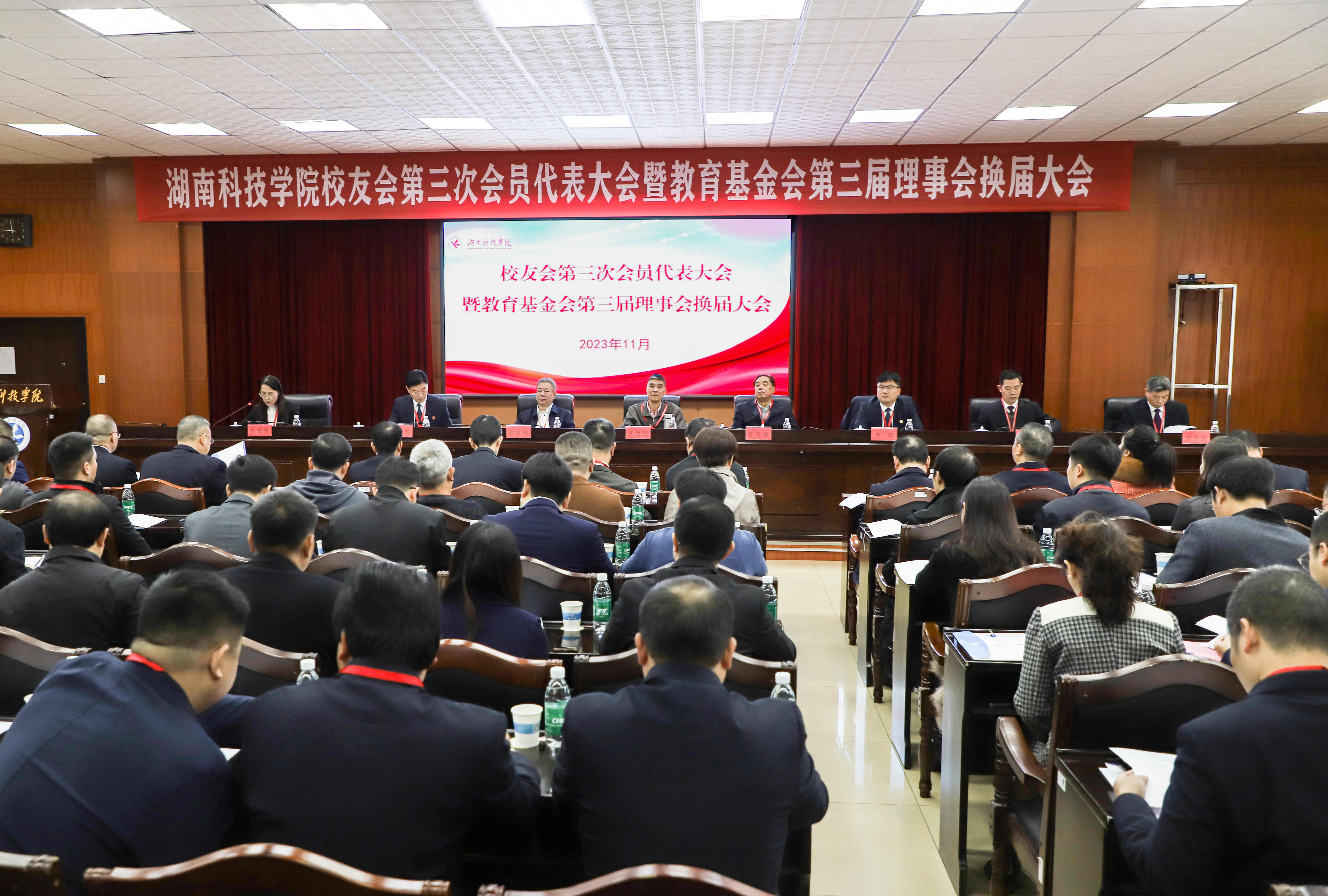 本网讯 11月12日,学校举行校友会第三次会员代表大会暨教育基金会第三届理事会换届大会,省政协文教卫体和文史委员会副主任、学校原党委书记、校友会第二届常务理事会顾问陈建民,学校原党委书记、校友会第二届常务理事会顾问管天球,学校原党委书记、校友会第二届常务理事会会长、湖南开放大学党委书记曾宝成,校党委书记李钢,校领导宋宏福、李常健、吴小林、何福林、陈灿军、郑银芳、何海,党委委员、组织部部长杨涛,原党委副书记唐艳明,原副校长程智开出席会议。会议由副校长郑银芳主持。