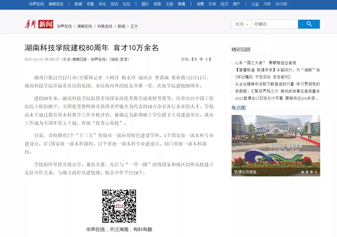 何其荣幸在校期间能够迎来80周年校庆,何其有幸能够作为学生代表参加建校80周年纪念大会。作为一名学生,看见学校教学能力越来越强,校园环境越来越好,科研水平越来越高,心中满怀憧憬!相信自己也可以和学校一同进步,相信自己和科院皆未来可期!祝愿湘科院下一个十年会更加辉煌!