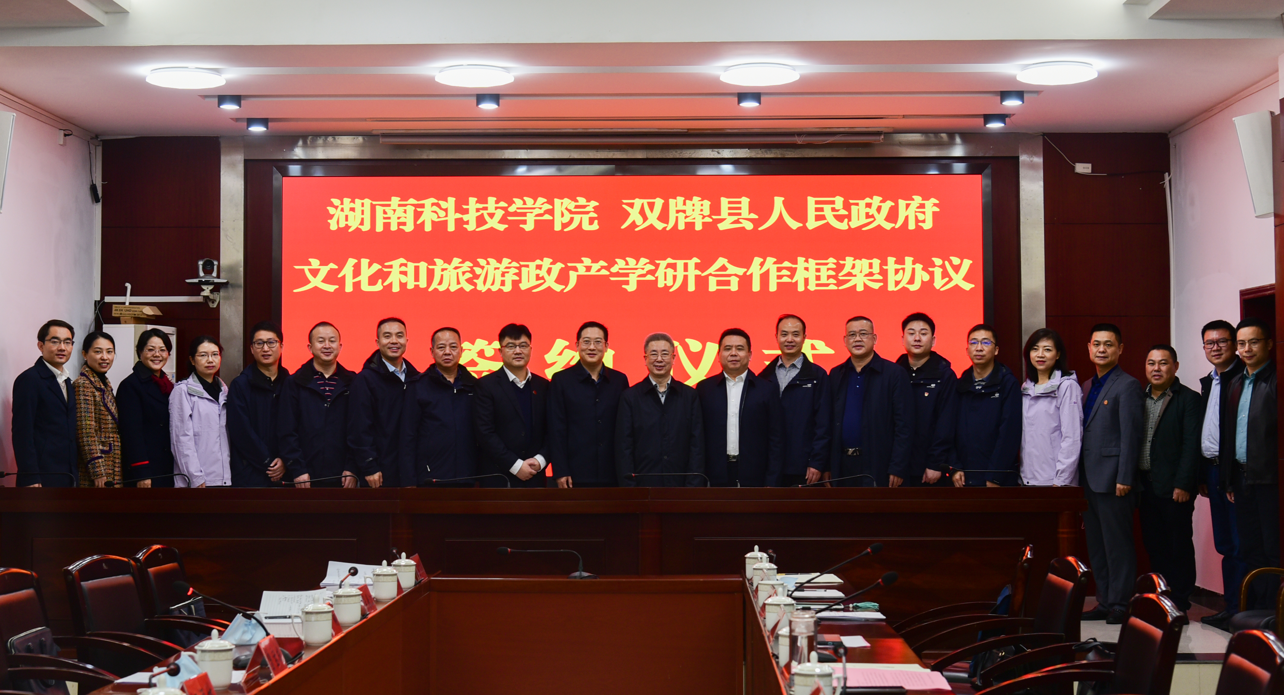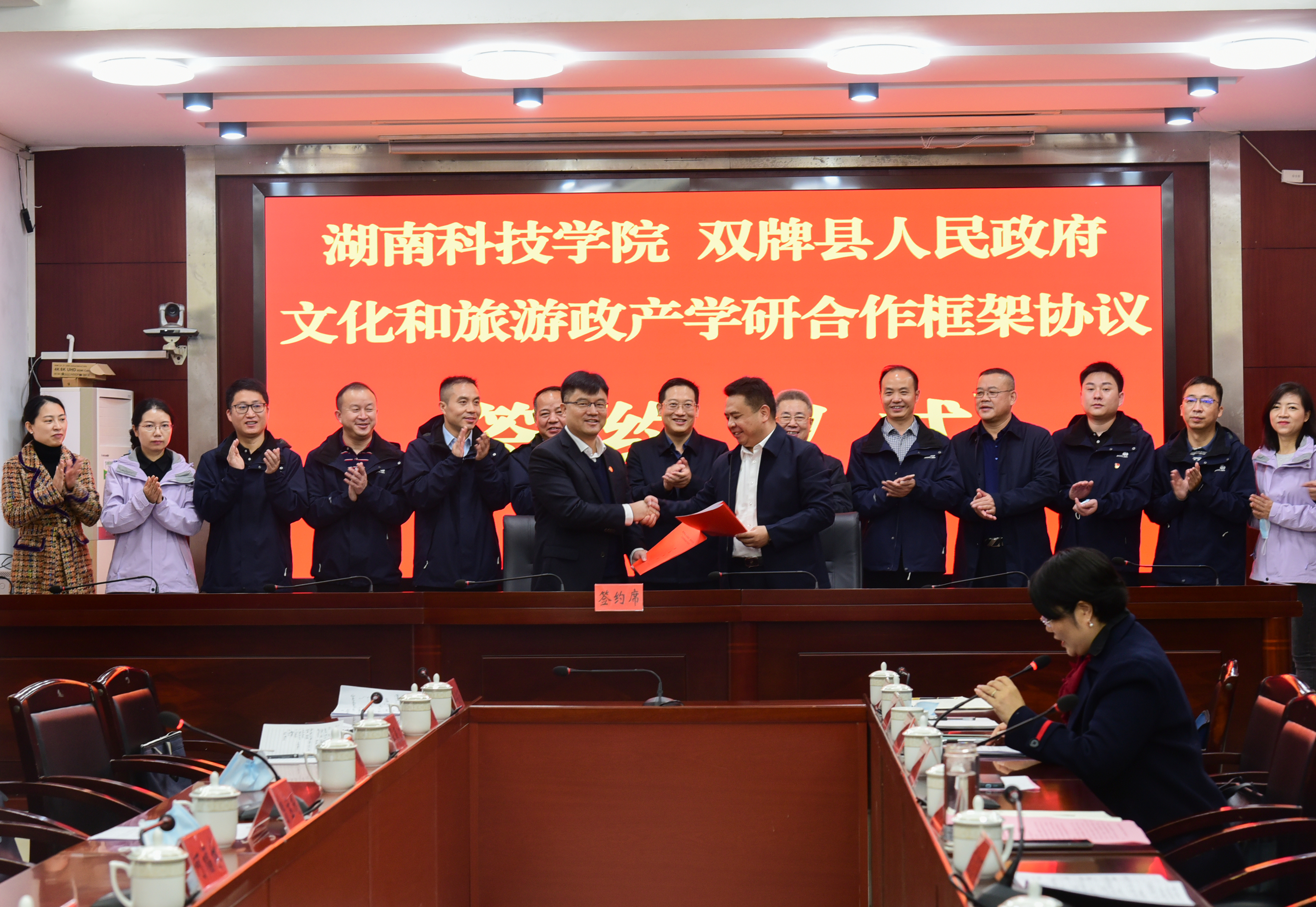 本网讯 11月2日上午,学校与双牌县人民政府签约旅游合作框架协议。双牌县委书记张跃斌,县委副书记、县长蔡富强,县领导何彩玲、周明冬、石婧,学校党委书记曾宝成,党委副书记、校长李钢,副校长何福林出席签约仪式。