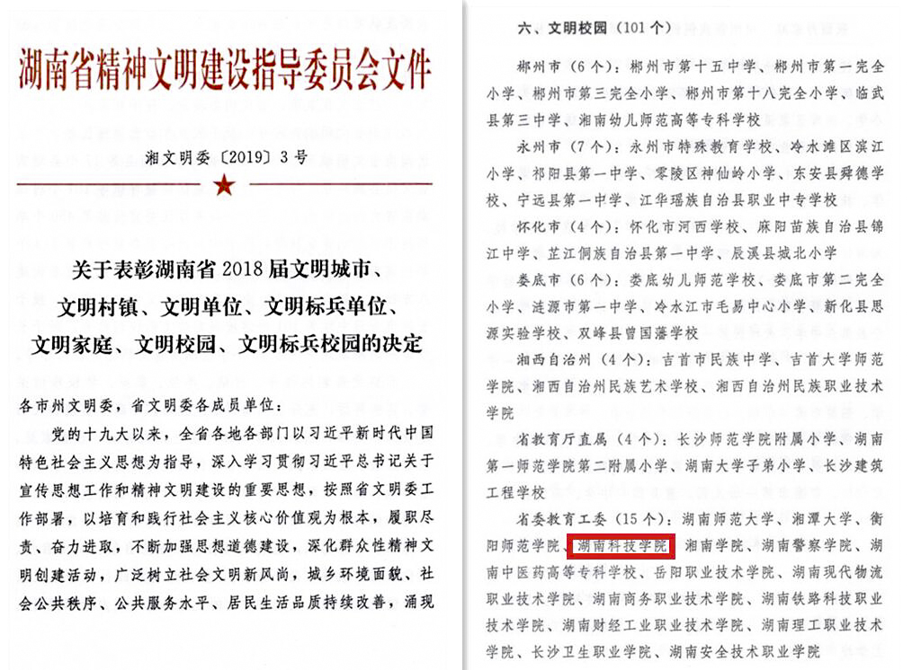 近日,湖南省精神文明建设指导委员会下发文件(湘文明委﹝2019﹞3号),伟德名列其中,获评2018届“湖南省文明校园”。