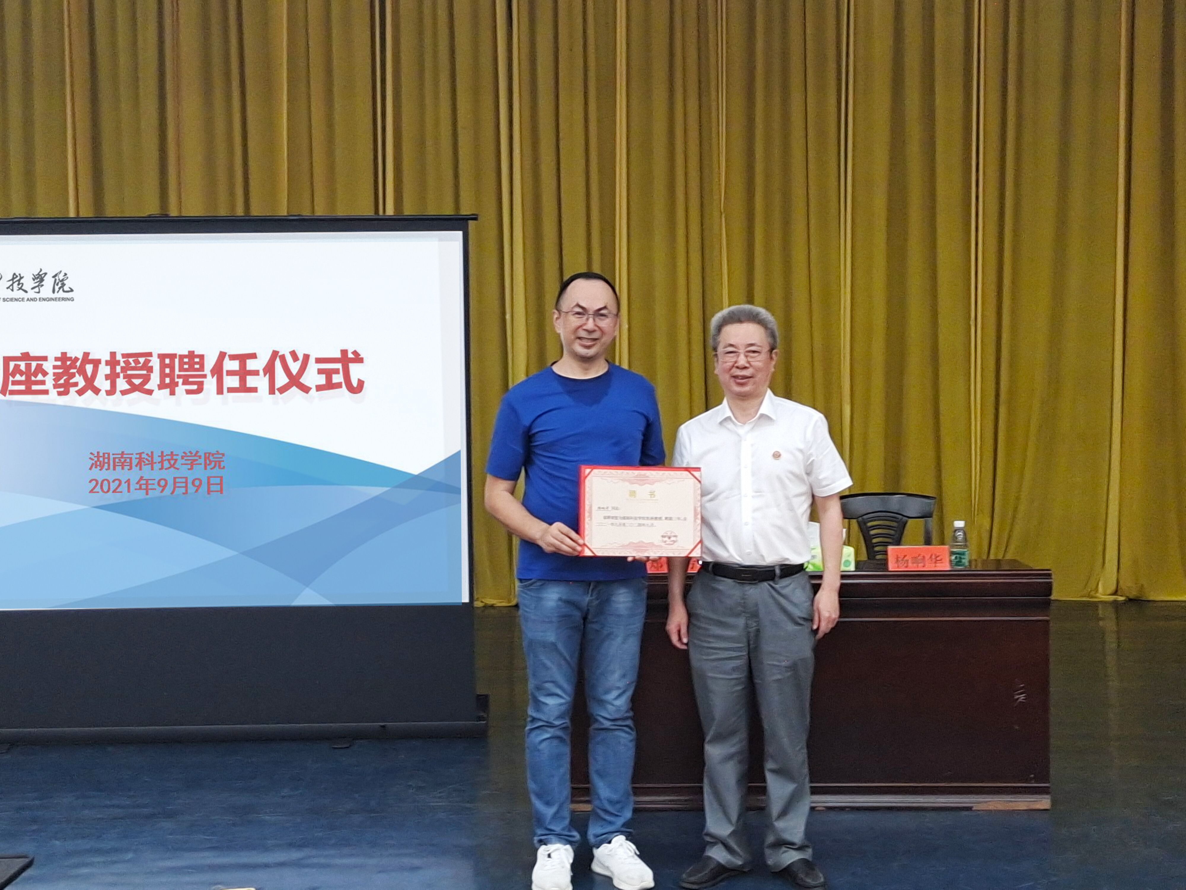 本网讯(通讯员周忠夏) 9月10日下午,永州籍优秀企业家、深圳华派科技创新有限公司董事长杨响华博士应邀来校做“专业创业赢未来”主题讲座,来自全校共200余名师生参加此次专题讲座,讲座由副校长郑银芳主持。校党委书记曾宝成为杨响华博士颁发客座教授聘书。