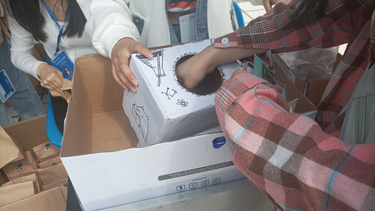 活动伊始,各班代表人进行有关二十大的发言。同学们慷慨激昂的发言,更是让在场的每一位同学都感到无比澎湃。文化广场上共有九个站点,每个站点设有不同的关卡,有关于二十大知识问答、猜红歌、环保寄语等。在旁观看的同学们都忍不住跃跃欲试。同学们在挑战完九个站点后,就拿着九个贴纸去礼品兑换处兑换礼品。有的拿到了杯子,有的拿到了风扇……但相同的是他们脸上都挂着青春洋溢的笑容。“活动很有新意,既让我们学习了有关于“二十大”和“环保”的知识,同时我们也享受到了游戏和拥有礼物的快乐”这是参加活动同学们的直观感受。