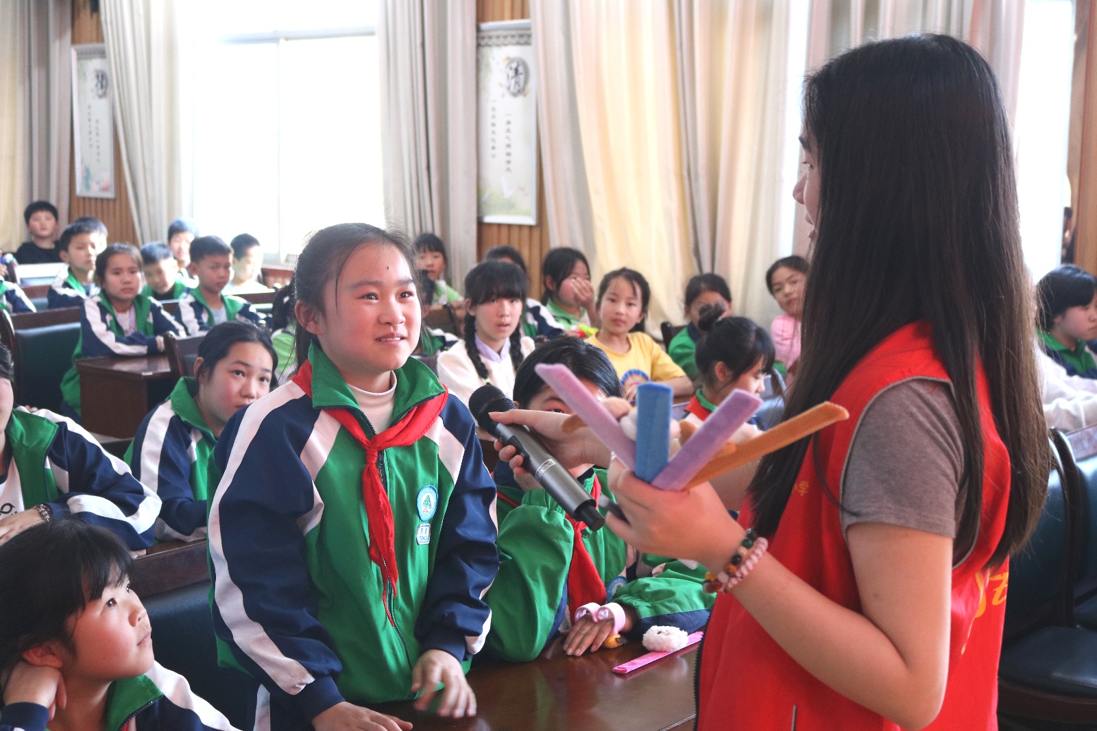 在“我身边的雷锋”分享环节,志愿者们鼓励孩子们分享自己或身边人的好人好事。同学们讲述了自己帮助邻居老奶奶的故事,获得了大家的热烈掌声。志愿者朱老师表示:“通过这些真实的小故事,我们希望让孩子们明白,雷锋精神就在我们身边。”活动中,孩子们参与踊跃,现场气氛高涨。