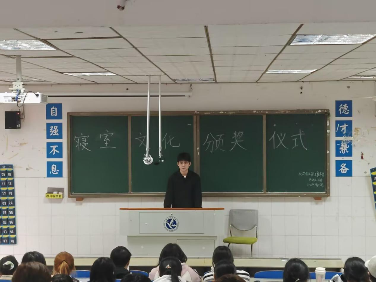 本参赛寝室以宿舍为创作阵地,精心完成书画板报的构思与制作。作品评选环节采用线上线下相结合形式开展,由我院学生公寓指导老师张自强,学生会主席、各部门部长及劳动生活部成员共同参与评审。3月28日,由张自强老师主持颁奖仪式,并为获奖人员颁发荣誉证书和奖品。