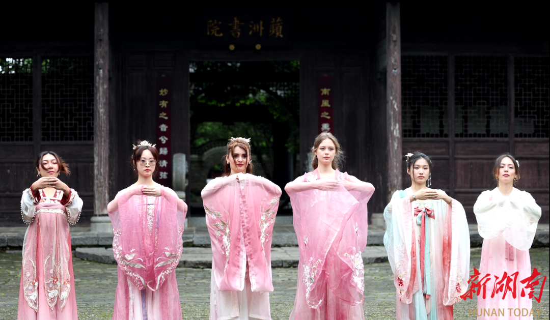 国际学生们身着汉服,跟随礼仪导师学习揖礼、执卷、漫步等传统仪态。地方文化导师分别以汉语、英语生动讲解了柳宗元等文化名人与永州源远流长的历史故事,学子们还用多国语言朗诵了陆游等人的诗作。