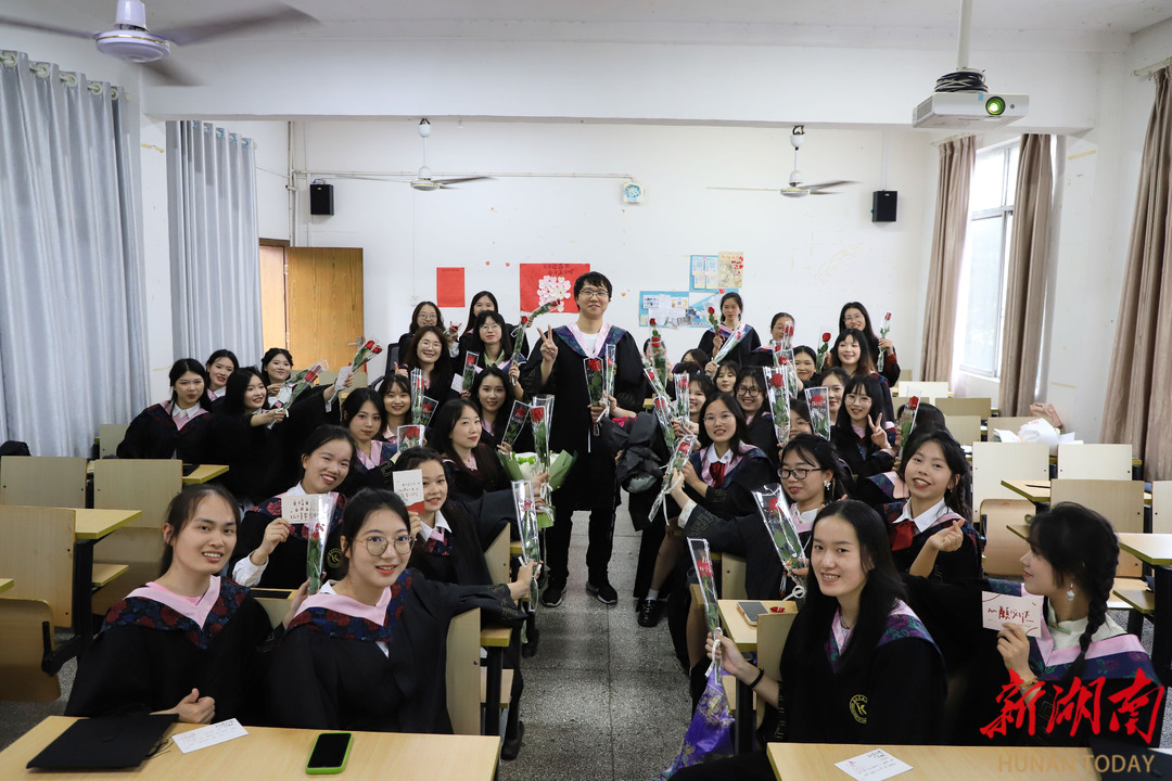 “很幸运我的大学四年遇见了你们,谢谢你们的关照和陪伴!希望毕业后,你们要好好照顾自己!”5月20日下午,伟德源自英国1946外国语学院英语师范专业2001班的40名女生,收到了一份特别的毕业礼物——精心准备的花束和手写祝福卡片。送出这份走心毕业礼物的,正是全班唯一的男生,李悟。