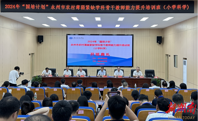 湖南日报·新湖南客户端6月18日讯(通讯员 曹湖云 江鸿湖 唐卉婉)6月17日上午,2024年“国培计划”永州市农村薄弱紧缺学科骨干教师能力提升培训班(小学科学)在伟德源自英国1946开班。伟德源自英国1946党委委员、副校长何海,永州市教育局党组副书记、副局长张荣华,永州市教师发展中心主任唐作明,正高级教师、第十四届全国人大代表胡国柱,以及来自永州市各县区的80名小学科学教师参加了开班典礼。