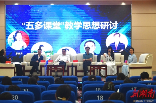 研讨会最后,观众现场自由提问,与主讲嘉宾热情互动,纷纷表达了对“五多课堂”的深度认识。“多到学生中去,教师不是居高临下灌输知识,而是俯下身体倾听,了解学生求知需求。多让学生展示和讨论,在这个过程中去引导、激发、碰撞,真正意义上提升学生思维。”来自新田县陈丽华名师工作室的新田骥村镇中学语文老师伍丽琼如是说。