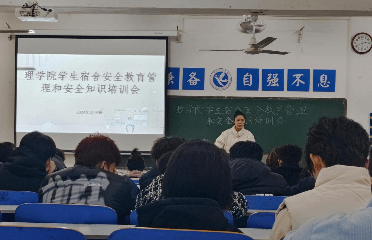 本网讯(通讯员 刘静)为进一步加强学生宿舍管理,营造安全、和谐的校园环境,3月6日晚,理学院召开学生宿舍安全教育管理和安全知识培训会,会议由学院公寓专干刘静主持,各年级班长、宿管委员、劳动生活部部长以及干事参加会议。