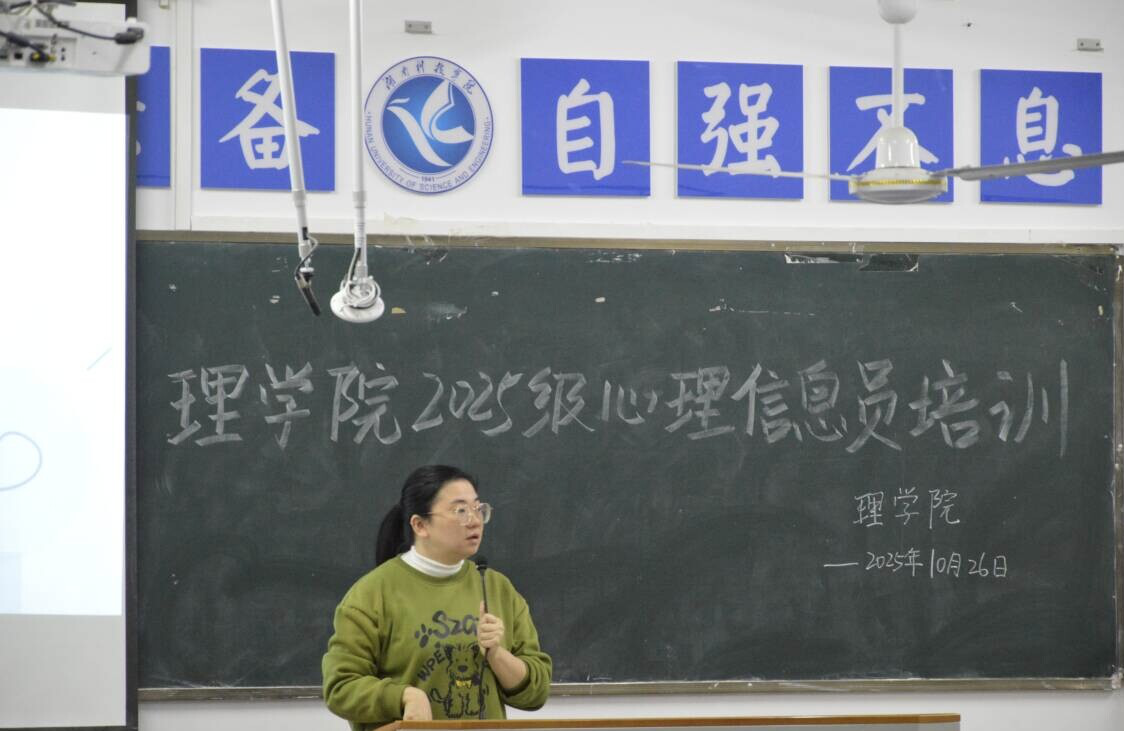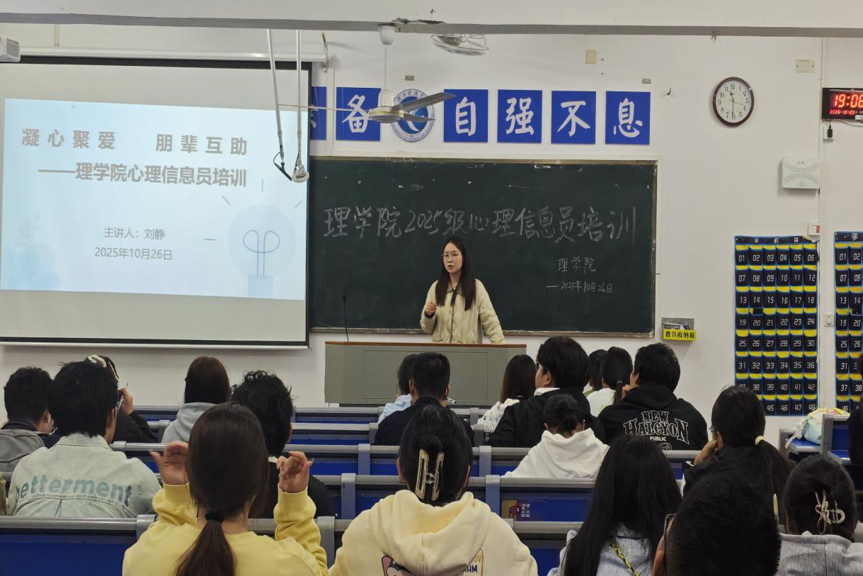 本网讯(通讯员 彭佳琪)为进步提升心理信息员的专业水平,切实提高心理健康教育工作的成效,理学院于10月26日在明理楼302开展以“凝心聚爱、朋辈互助”为主题的心理信息员培训。本次会议理学院党总支副书记欧阳素勤、各班心理委员、心理信息员参加,由心理专干刘静老师主持。