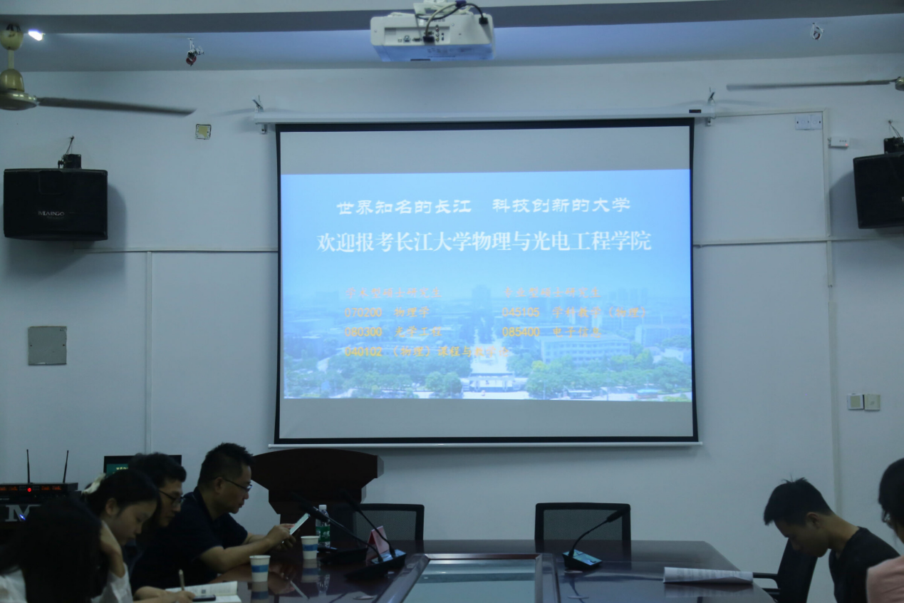 会议伊始,龚小龙首先向同学们介绍了长江大学的地理位置、学校实力等基本信息;接着带领同学们认识物理与光工程学院的研究生专业、科研项目成果方面信息;然后详细介绍了长江大学的研究生招生政策,向同学们展示了研究生的学习和生活状况。会议的最后,龚小龙和田永红耐心给同学们解答疑惑,并传授备考方法,同学们纷纷表示受益匪浅。