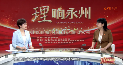 去年7月1日,习近平总书记在庆祝中国共产党成立100周年大会上的重要讲话中首次提出伟大建党精神,并把伟大建党精神称之为中国共产党的精神之源。在节目中,廖雅琴结合李达、陶铸、蒋先云、陈树湘等永州红色文化名人的红色故事,从四个层面深入浅出的对伟大建党精神的深刻内涵进行了解读。同时,她还围绕学习贯彻落实习近平新时代中国特色社会主义思想、助推实施湖南省“三高四新”战略、加快推进永州市“三区两城”建设,以及充分挖掘思政元素发挥育人功能进行了阐述。