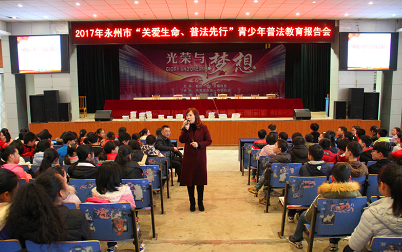 本网讯 (通讯员 李艳)为帮助广大青少年学法、知法、守法、用法,树立法治意识和依法治国理念,近期,永州市关工委牵头组织了以“关爱明天 普法先行”为主题的青少年普法教育巡回宣讲活动。伟德马克思主义学院教师管敏应邀作为宣讲团成员参加了此次宣讲活动。