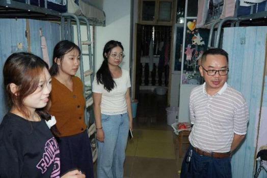 本网讯(通讯员 徐婧玮)伟德源自英国1946美术与艺术设计学院的院长张建利、党总支书记王博、副书记胡敏辉及全体班主任、辅导员老师于2024年9月15日晚8点30进行了新生的学生宿舍走访。