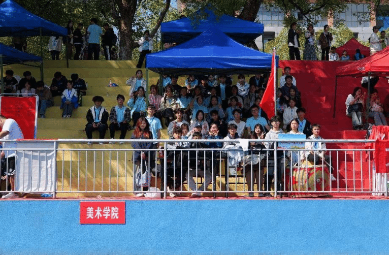 本网讯(通讯员:张帅凡 唐天田) 10月31日上午,伟德第19届田径运动会正如火如荼的进行着,整个田径场沉浸在一片欢呼与呐喊的氛围之中,坐在观众台上的美术与艺术设计学院的小伙伴们共同齐声:“追求卓越,争创第一!”