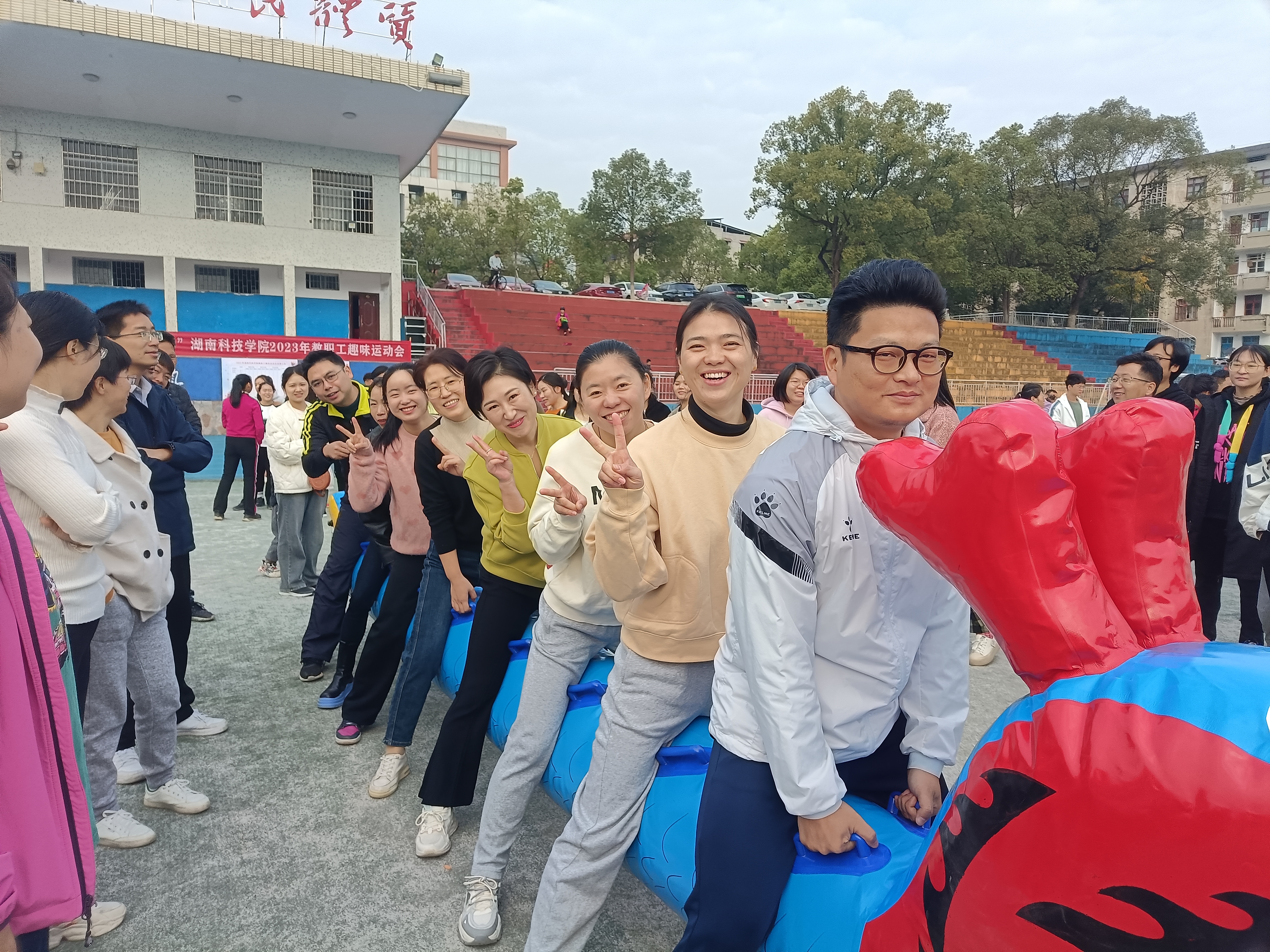 本网讯11月25日,美术与艺术设计学院组织教职工参加学校举行的2023年“拼搏科院 乐享运动”趣味运动会。赛场上,教师们齐心协力,敢于拼搏,将和谐与快乐贯穿始终。经过激烈的角逐,学院教职工代表队赛出了朝气蓬勃的风采,获得“无敌战车”项目一等奖,“百舸争流”项目三等奖,“众星捧月”项目二等奖,“超级跳跃”项目获三等奖,同时获得团体第二名的优
