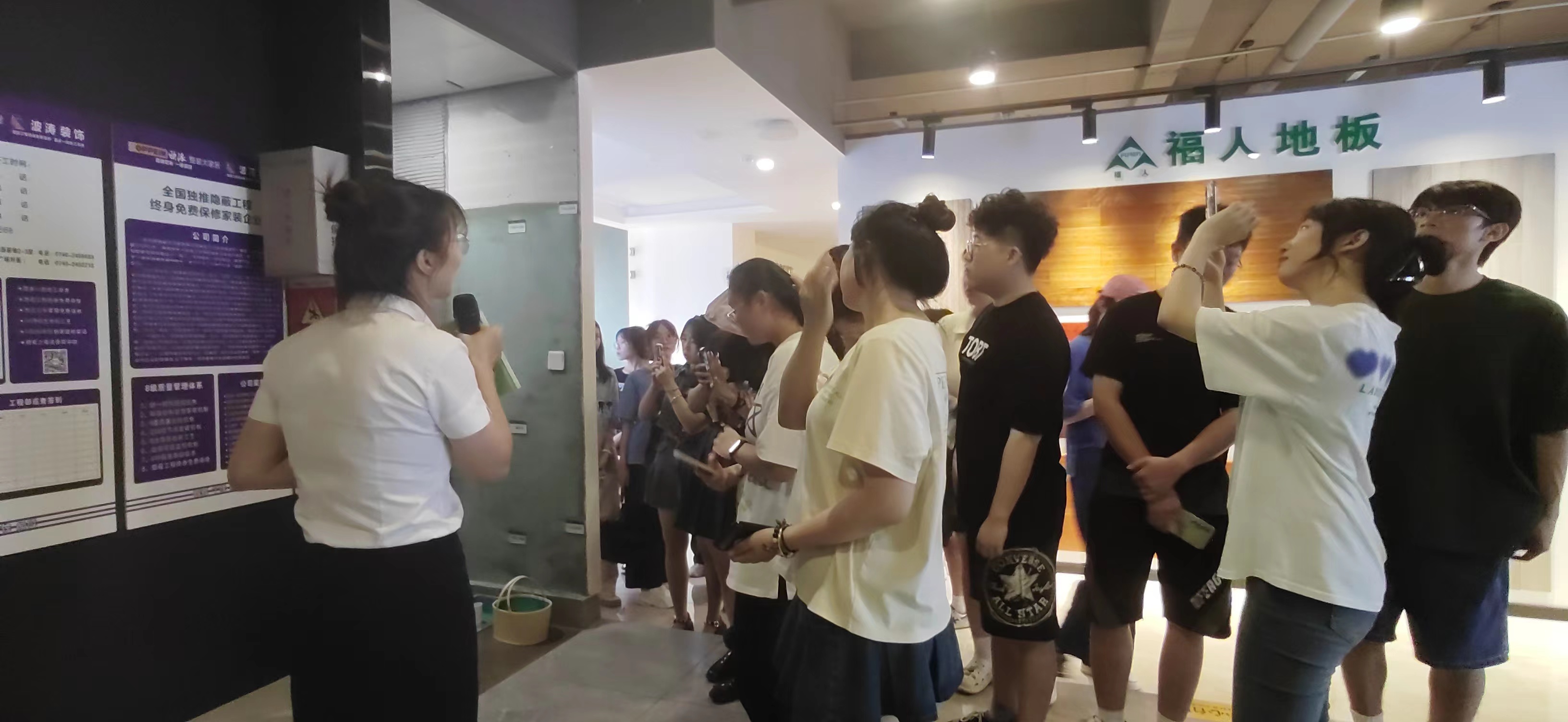 公司总监张应理热情接待了学院师生,首先,公司各部门负责人分别带领学生参观了永州波涛装饰工程有限公司产品展厅和工艺展厅,分别为学生们详细介绍了公司设计理念、合作的产品品牌、公司资源优势及市场反响等情况,并重点介绍了波涛整装的技术标准及价格优势。其次,崔康平经理为见习学生们作主题讲座,作为曾经的校友,崔经理结合自己的亲身经历,从设计师需具备的能力等方面对如何成为一个优秀的室内设计师进行了详细的阐述。最后,张应理总监汇报了详细的见习培训计划安排。学生们通过参观和讲座,加深了对家装行业人才需具备的知识体系、人才定位与发展、综合能力培养等方面的认知水平。在互动环节,针对学生们提出的问题,公司相关人员一一进行了详细解答,受到了学生们的热烈欢迎。