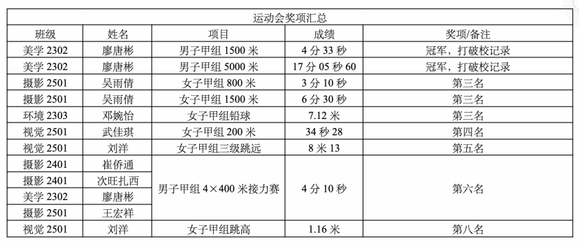此次校运会取得的优异成绩,是学院重视“德智体美劳”全面发展的生动诠释,更是全院师生团结一心、奋勇拼搏的成果。未来,美术与艺术设计学院将继续以体育精神凝心聚力、赋能前行,汇聚全院奋进力量,稳步推动学院各项事业高质量发展。
