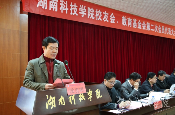 副校长、第一届校友会、教育基金会副会长宋宏福向大会作工作报告。宋宏福总结了近三年来校友会工作取得的成绩,提出了下一步工作设想,并希望广大校友与母校凝心聚力、携手并进,开创出校友工作的新局面,促进母校与校友事业的共同发展。