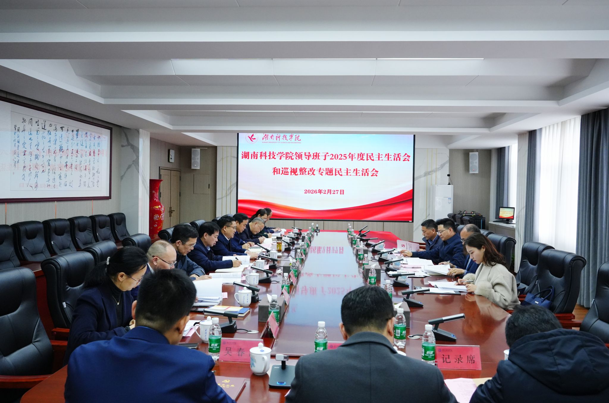 按照省委部署和省委教育工委安排,2月27日,校党委班子召开2025年度民主生活会暨省委巡视反馈意见整改专题民主生活会,以中共中央政治局民主生活会为标杆,深入学习贯彻习近平总书记重要讲话精神,围绕本次民主生活会主题,结合思想、工作和作风实际,深入进行检视剖析和党性分析,严肃开展批评和自我批评,明确整改举措和努力方向,切实以优良作风凝心聚力、真抓实干。