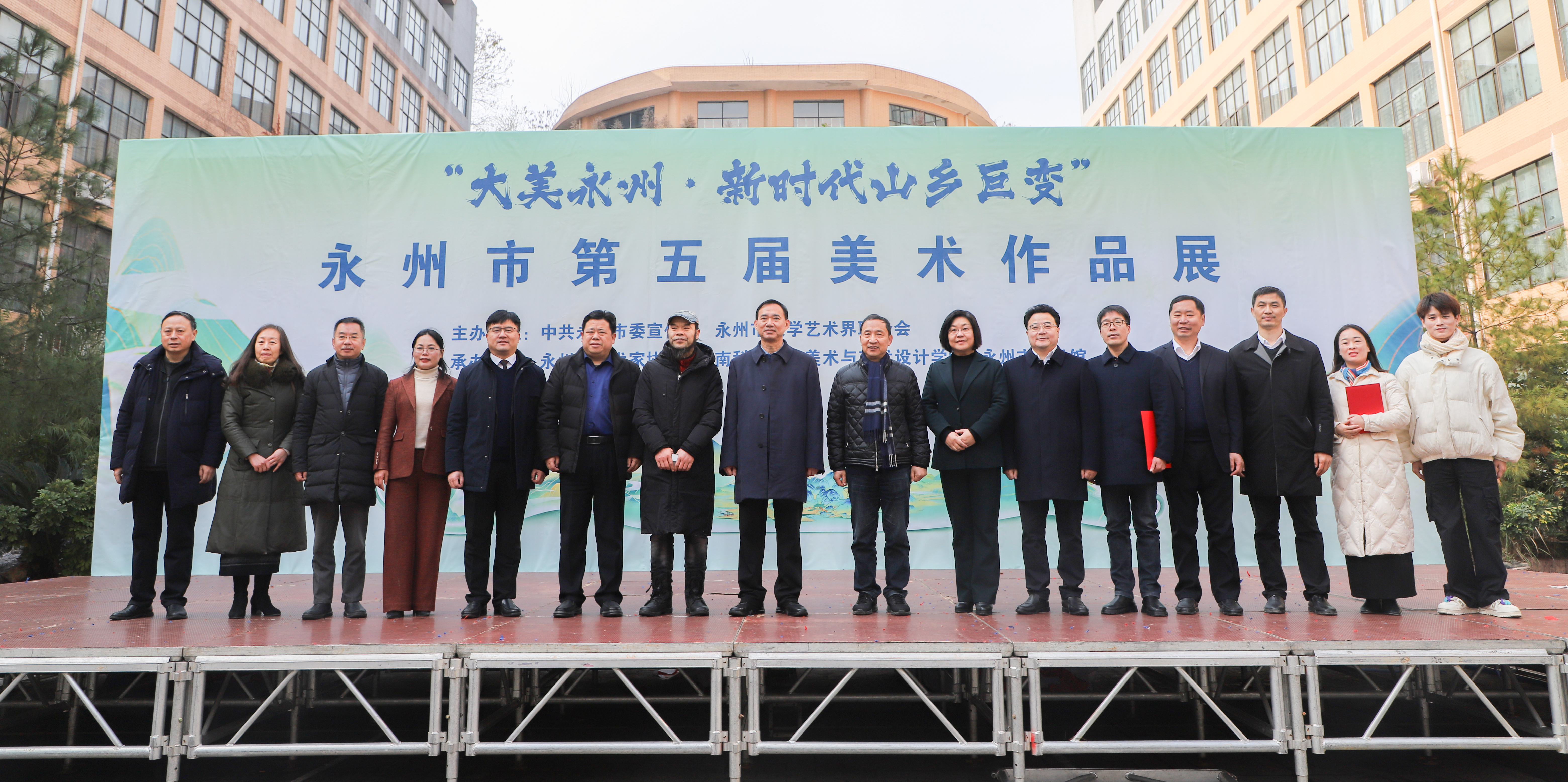 本网讯 12月20日,“大美永州·新时代山乡巨变”永州市第五届美术作品展在伟德美术与艺术设计学院美术馆举行,市委书记朱洪武来到展厅观展,就参展作品的创作艺术、表达内容进行深入交流,对此次展览活动予以高度肯定。他强调,永州文学艺术工作者和爱好者们要学习贯彻习近平文化思想,坚持把追求真善美作为艺术创作的源泉,传承中华优秀传统文化,深入生活、扎根人民,为推动永州文学艺术事业繁荣发展贡献智慧和力量。市委常委、宣传部部长刘厚,市委常委、市委秘书长刘玲军,永州市人大常委会原副主任、永州市书法家协会顾问魏湘江,零陵区区委书记赵立平,区委副书记龙军,区委常委、宣传部部长李明,校党委书记李钢,党委副书记宋宏福,副校长吴小林、郑银芳陪同考察。