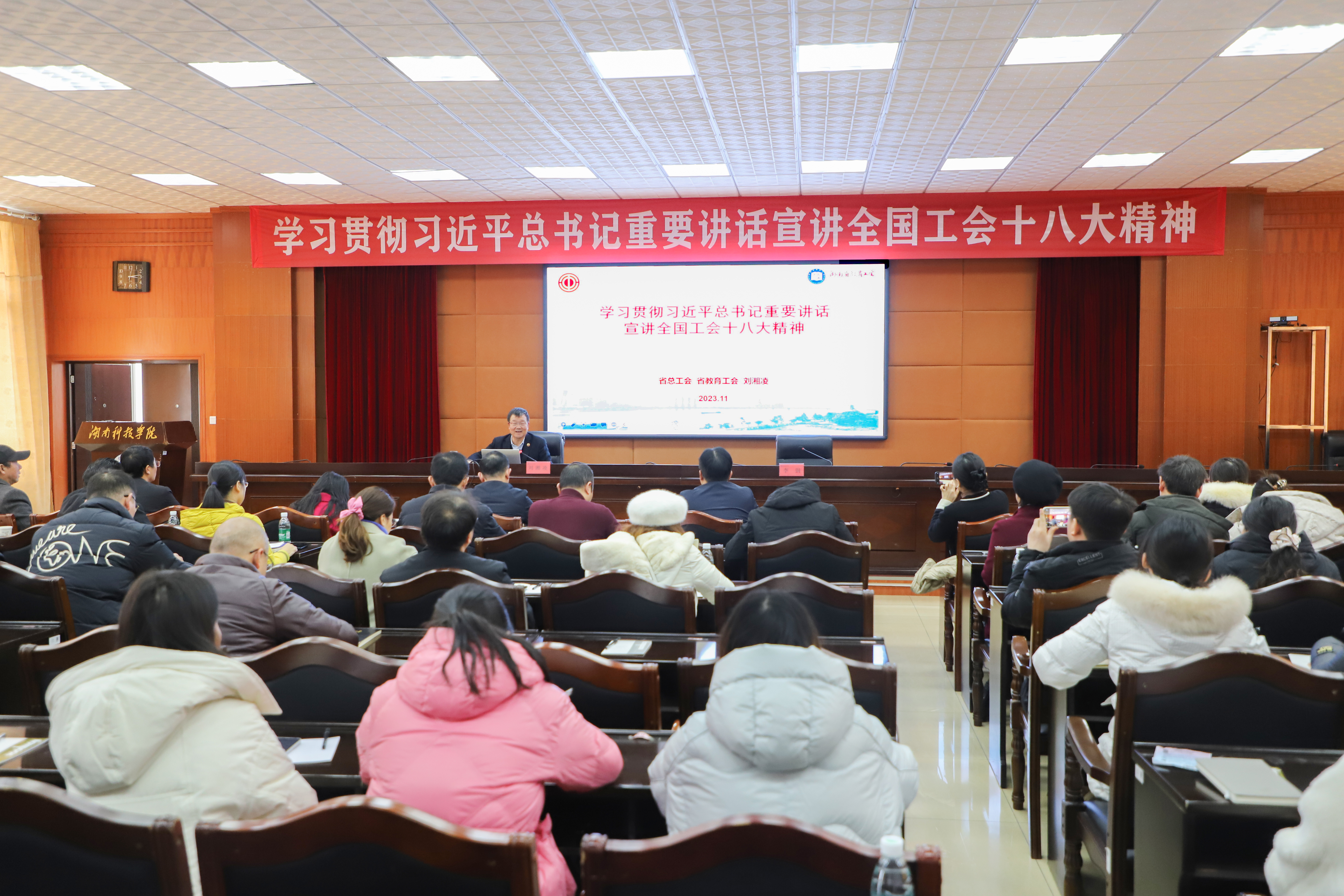 凝聚奋进力量 谱写时代华章 省教育工会主席刘湘凌来校宣讲中国工会十八大精神(图)
