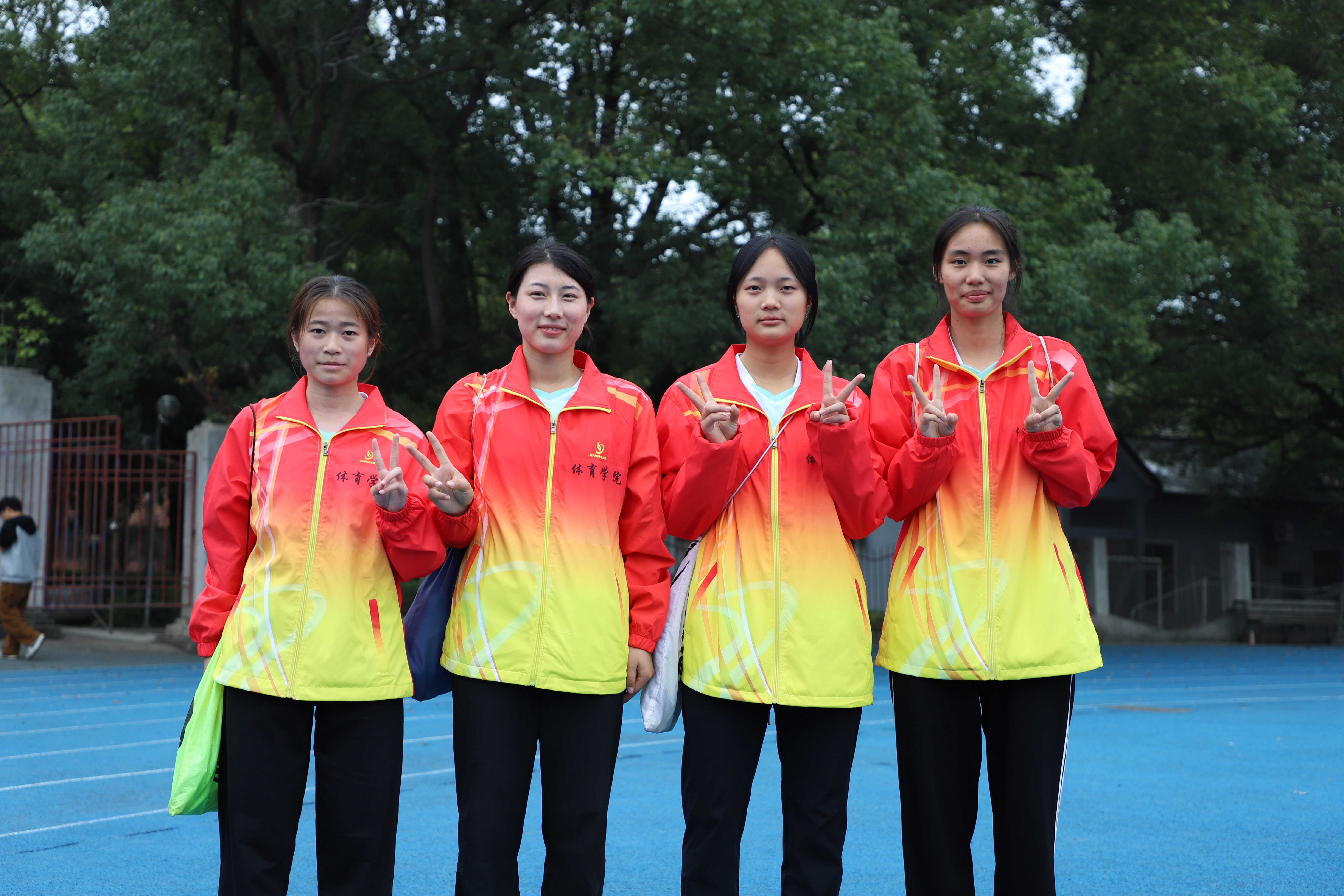 本网讯(记者 袁馨)11月4日上午,在激动人心的女子乙组4*100米接力赛中由王佳、刘依、栗芷若、李易玲以54秒53的成绩险胜了大二和大三的学姐们。