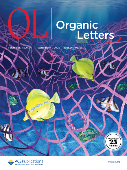(通讯员 刘乐)近日,国际知名期刊Organic Letters(中科院一区TOP)以封面文章报道了化学与生物工程学院生物功能材料与绿色催化转化团队的最新研究成果“Giant Cavity Macrocycle: Synthesis, Structure, and Its Complexation with Pagoda[5]arene”(巨大空腔尺寸的大环分子:合成,结构及其与塔[5]芳烃的络合性能),该研究成果由化学与生物工程学院生物功能材料与绿色催化转化团队成员独立完成,曾飞博士为第一作者与通讯作者。