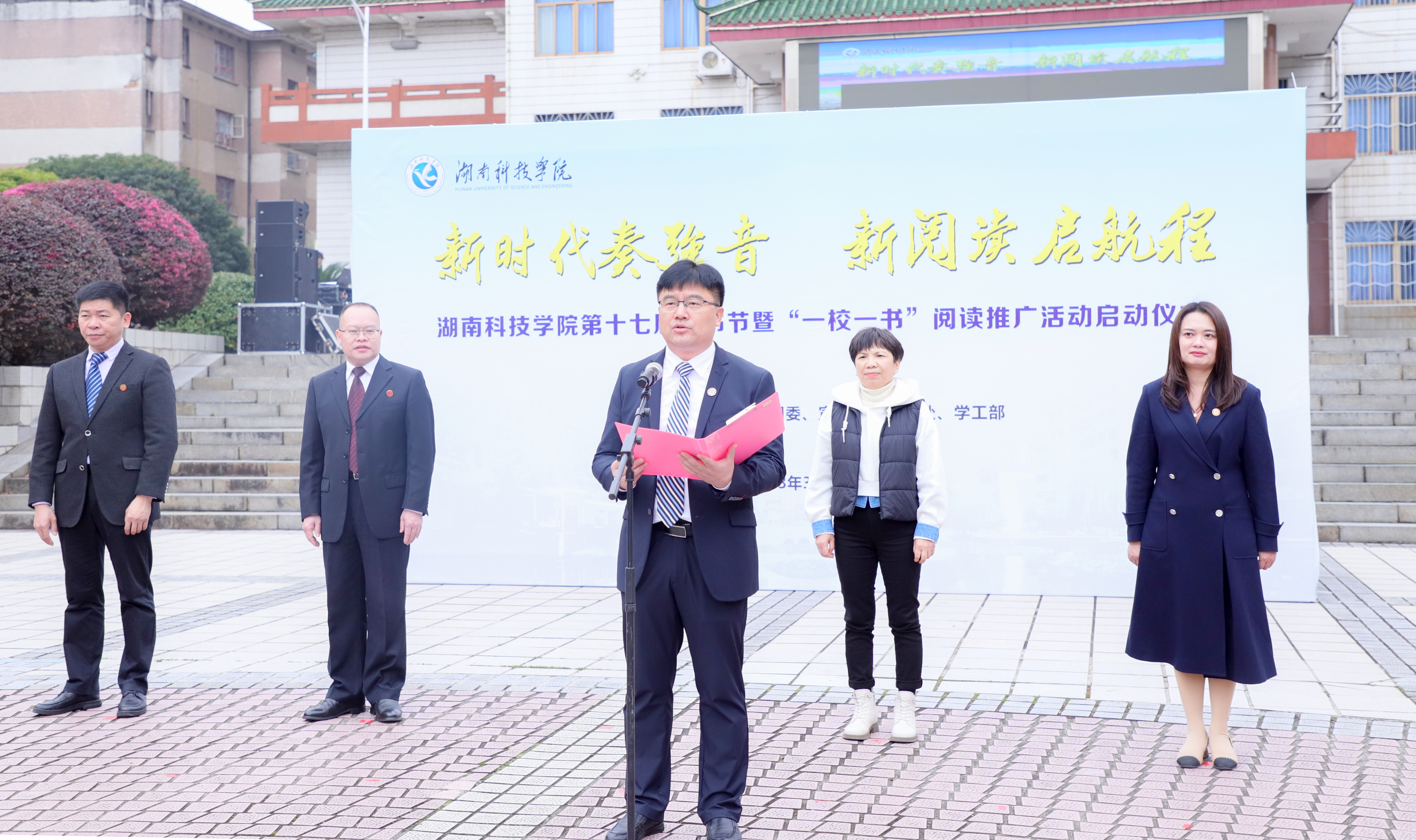 本网讯 “营造喜爱阅读、阅读好书的良好风气,引导学生爱读书、读好书、善读书!”3月20日,学校举行第十七届读书节暨2023年“一校一书——经典、精读、经世” 阅读推广活动启动仪式,用阅读赋能青春,让书香浸润校园。省教育厅高教处一级调研员张琳,校长李钢,副校长何海出席启动仪式。