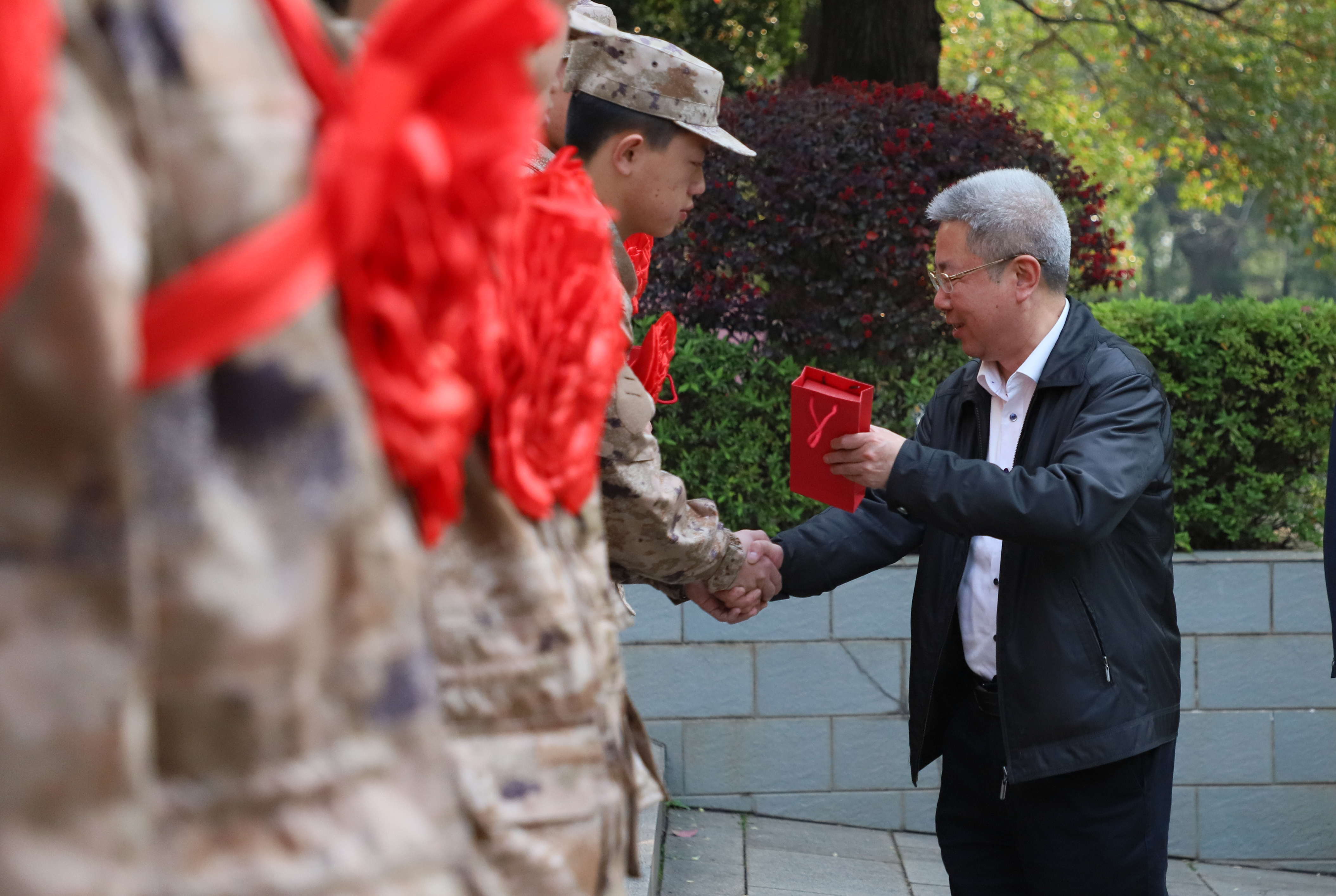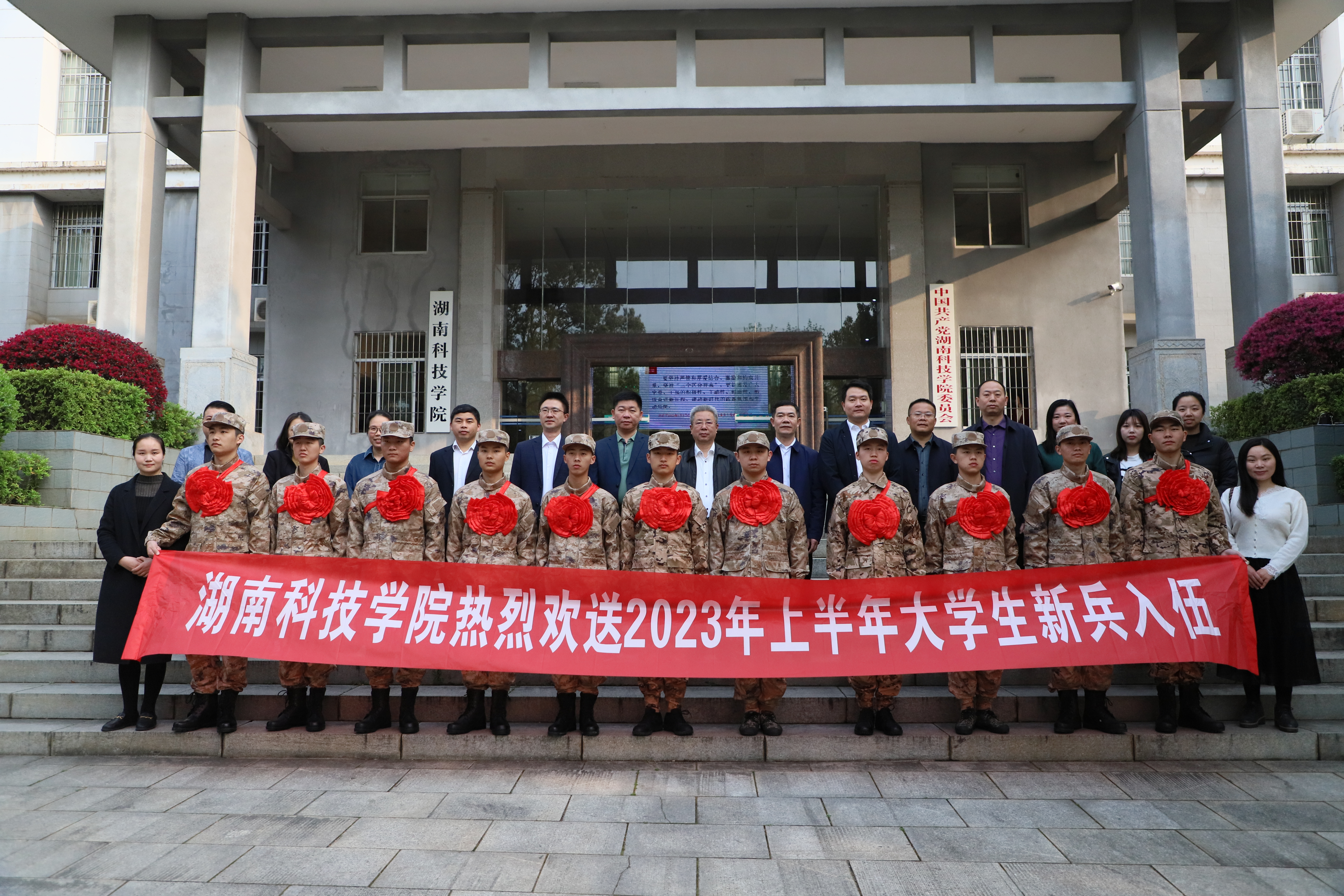 本网讯 3月15日,学校举行2023年大学生应征入伍欢送仪式。党委书记曾宝成,副校长吴小林为入伍新兵送去祝福,并赠送入伍纪念品。