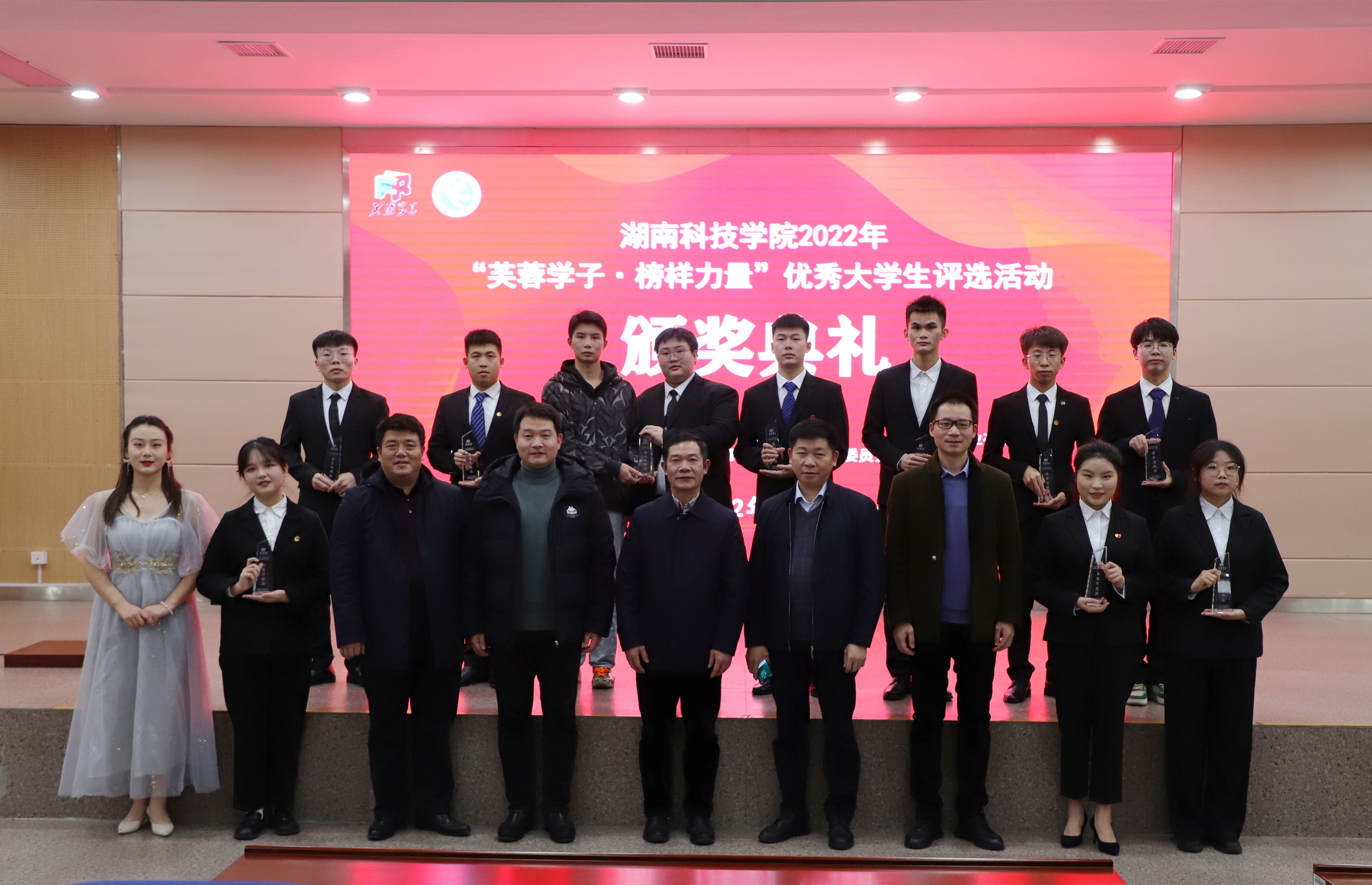 经个人申请、学院推荐、资格审查、网络投票、班级投票、评委现场评审等多项环节,共评选出10个优秀团队和先进个人。李彦鹏、校青年志愿服务指导中心获得“芙蓉学子·社会实践奖”;贾丽、付雄获得“芙蓉学子·自强不息奖”;朱希、杨琳琳获得“芙蓉学子·公益行动奖”;蒋力、吴迪获得“芙蓉学子·道德风尚奖”;鲸蓝团队、刘喜龙获得“芙蓉学子·学术科研奖”。
