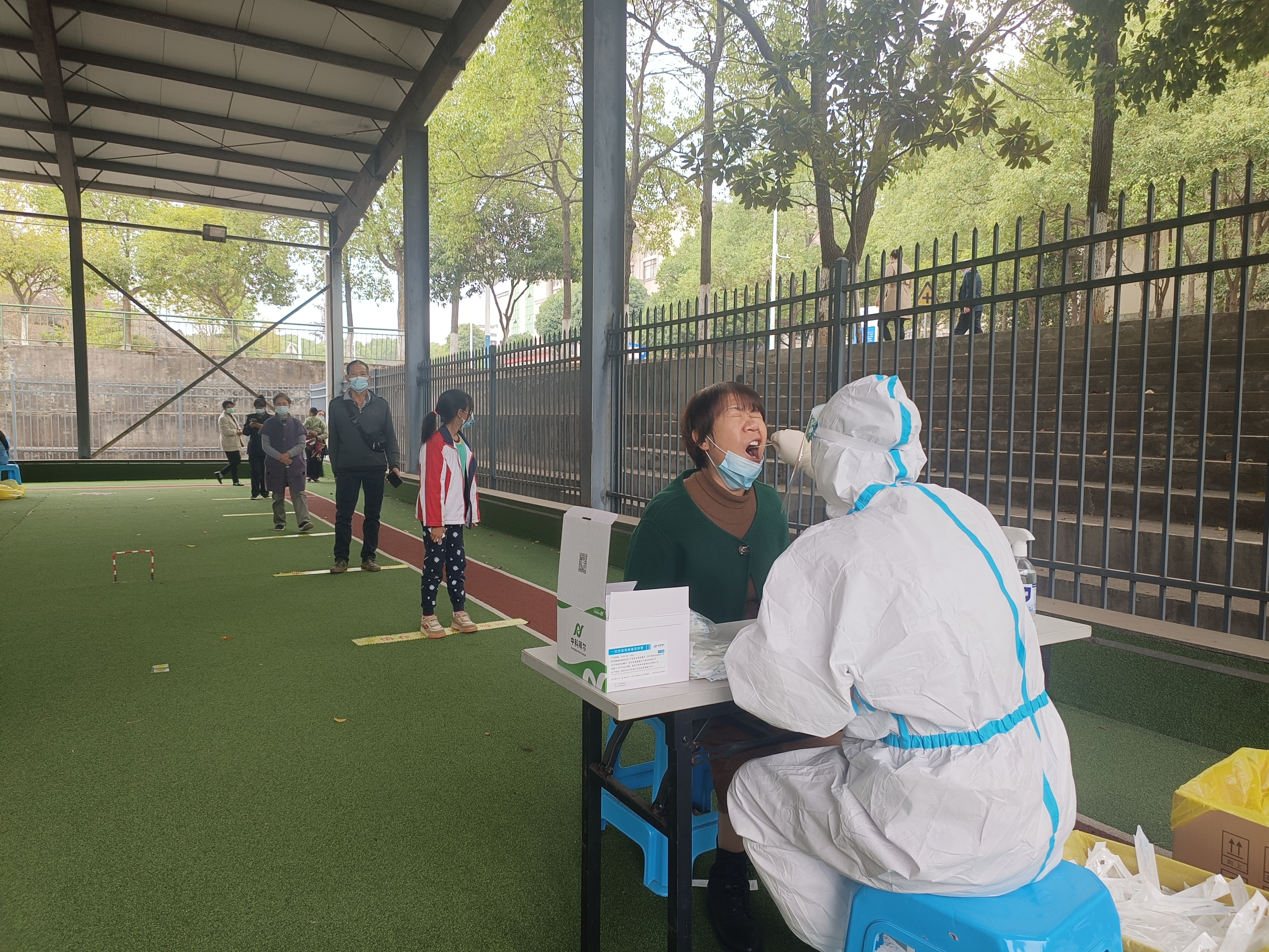 检测中加强现场采样管理,实行人员单向流动,设置显著标识引导受检人员进出采样区,对所有人员登记信息、查验健康码和行程卡。在校师生按照疫情防控要求,自觉佩戴口罩,保持一定间隔距离,在志愿者引导下井然有序地排队,