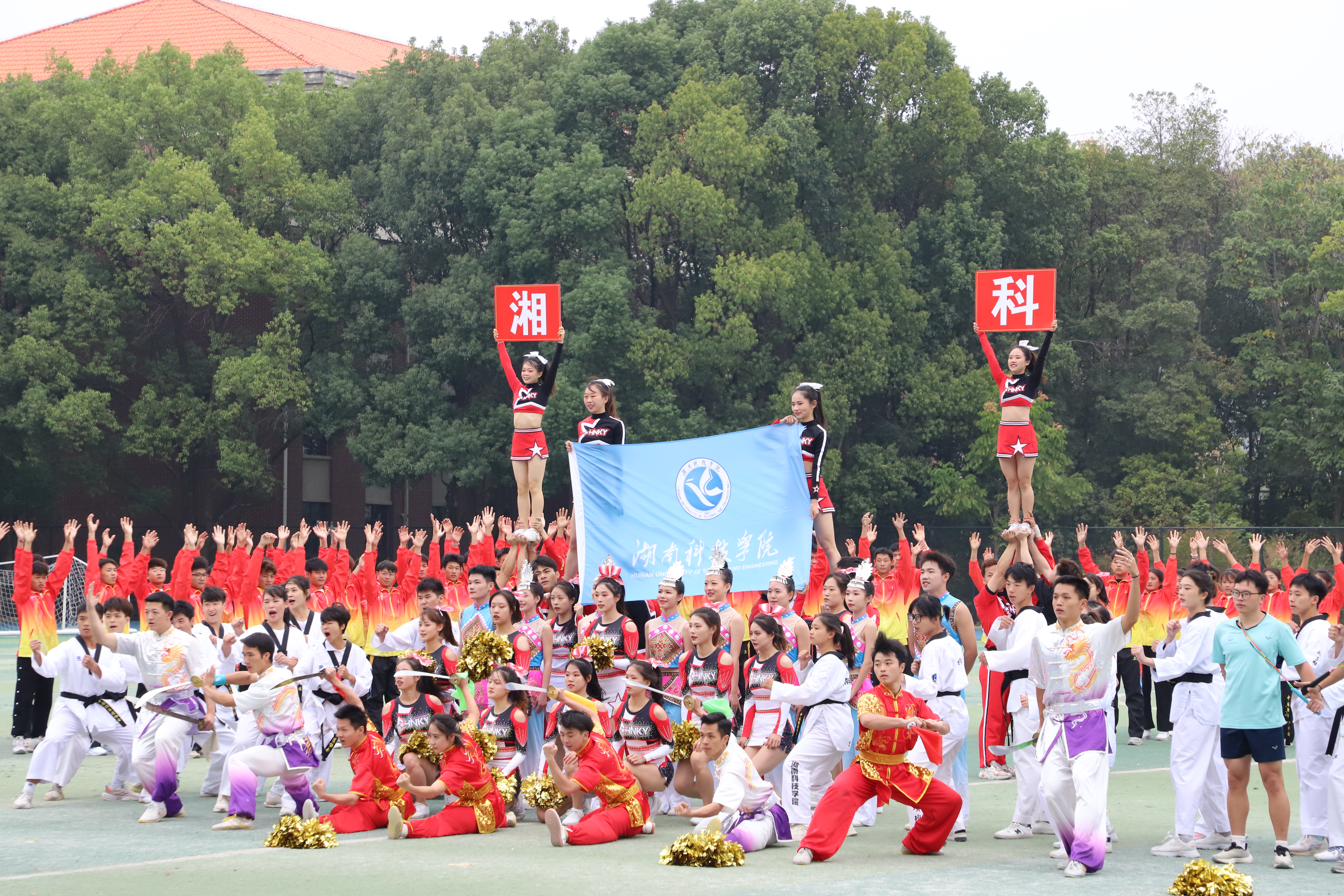 伴随着欢快的乐曲,传媒学院的同学们带来了舞蹈表演《一起向未来》。校武术队、跆拳道队、健美操队的同学们为大家带来精彩的体育表演也将开幕式推向高潮。他们的脸上洋溢着青春和热情,充分展示了湘科院学子积极向上的精神面貌。