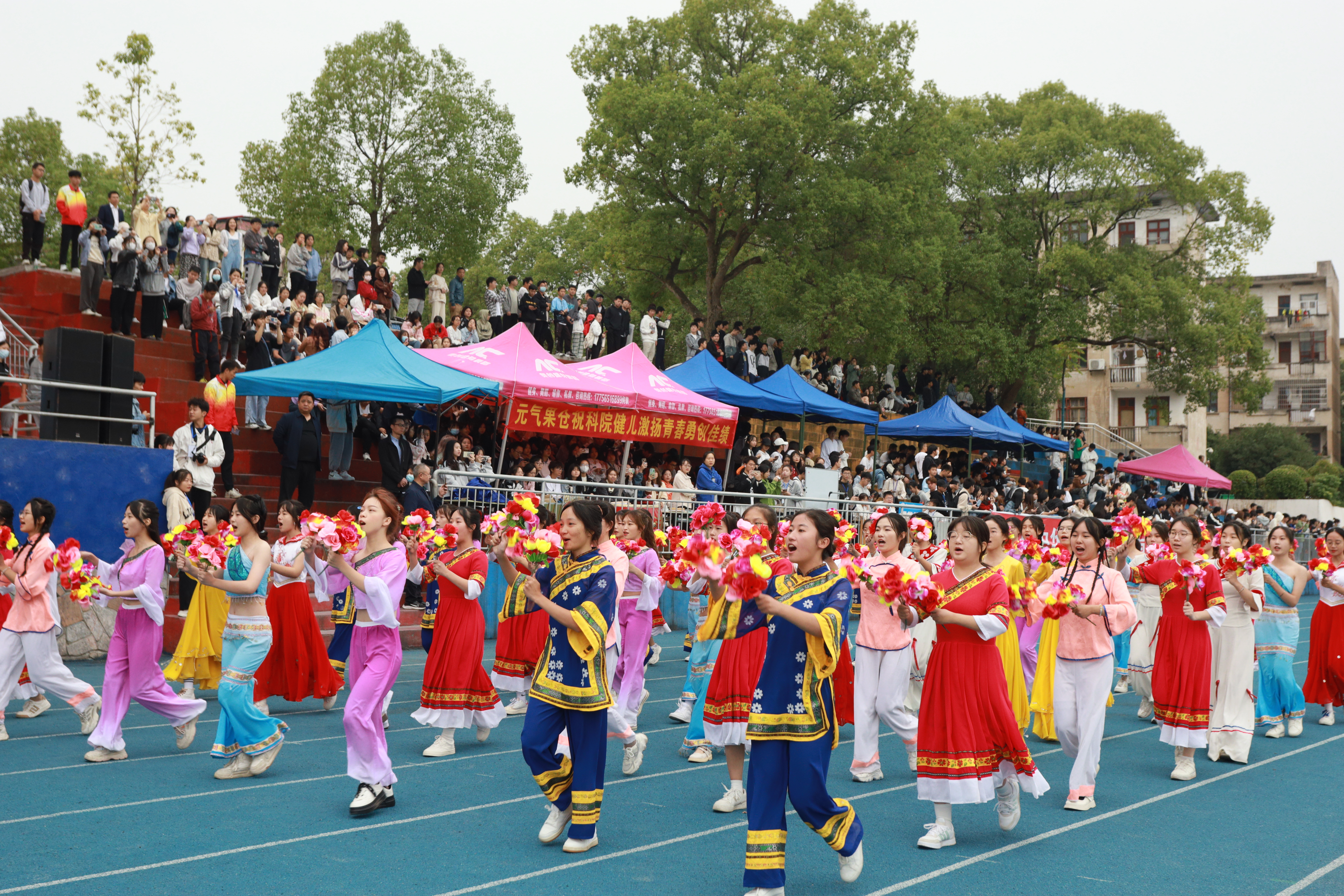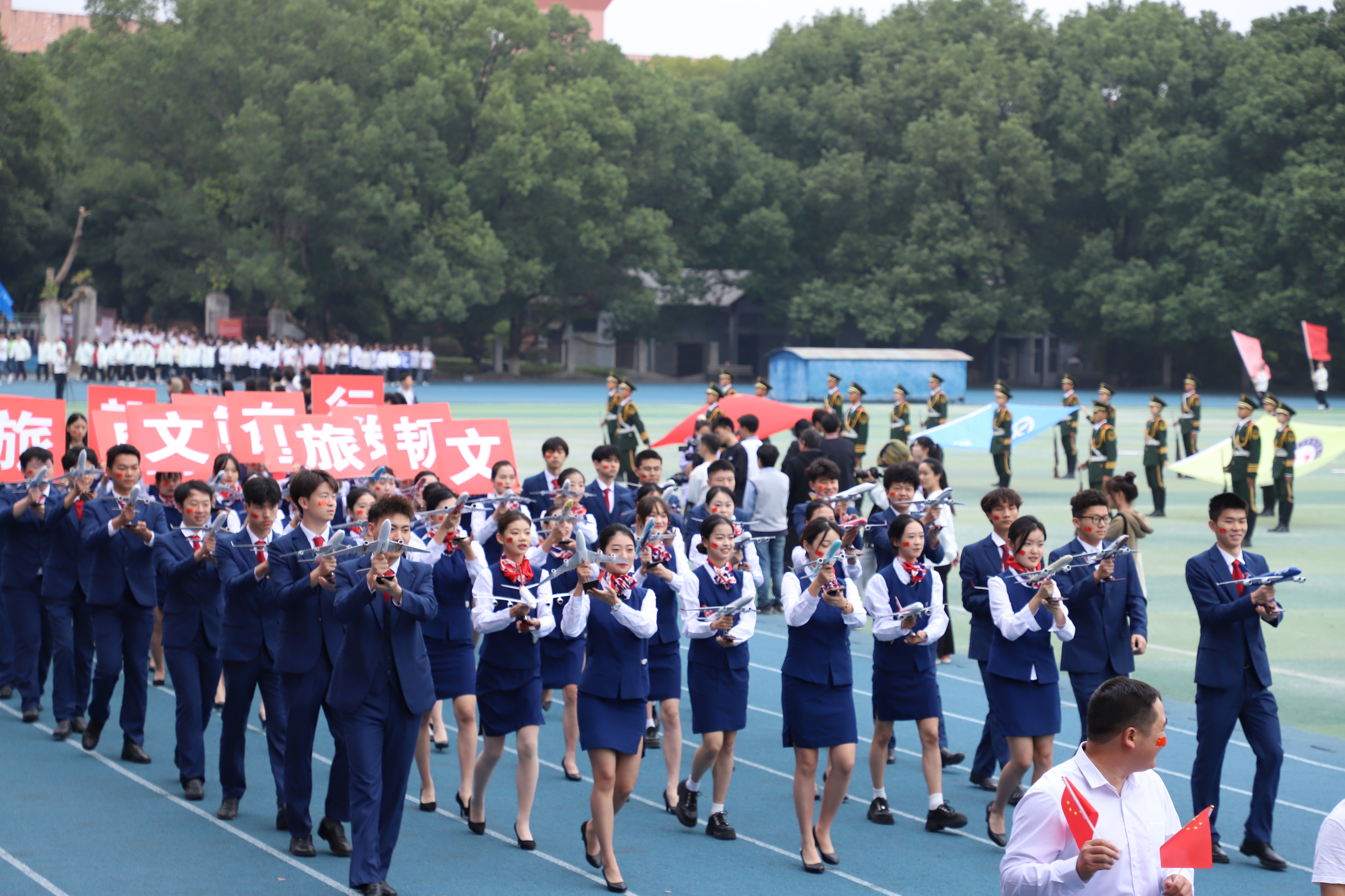 伴随着激昂的运动员进行曲,护旗手们迈着有力的步伐,护送国旗、校旗和会旗经过主席台,乐队、彩旗队、鲜花队、彩球队、学院代表队、教师代表队的方阵紧随而来,运动健儿手持院旗,脚步有力,展现出各教学学院独有的风采。他们以青春的朝气、饱满的热情、坚定的步伐,显示出科院学子高昂奋进的精神风貌。