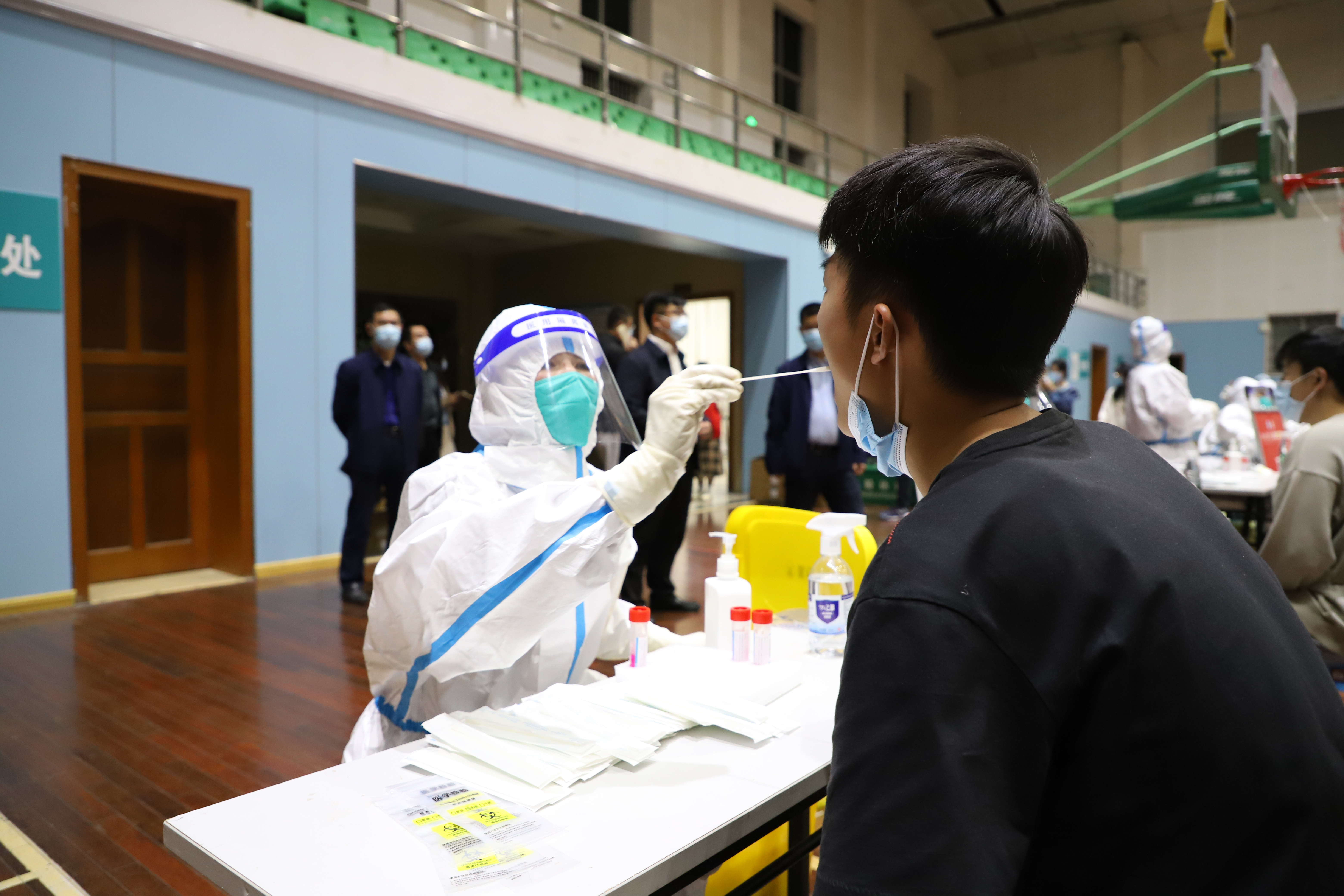 校领导强调,要加强现场秩序维护。根据核酸检测进度组织待检人员分批次、分时段有序参加检测,做好检测现场待检师生员工的引导、调度工作,确保按照时限要求,高效、快速完成核酸检测采样工作,严格落实戴口罩、“一米线”、环境消杀等防控措施。要做实做细各项服务保障工作。优化服务流程,减少师生排队等待时间,落实好关心关爱措施,为全体师生和一线工作人员、医护人员提供更加良好的环境。