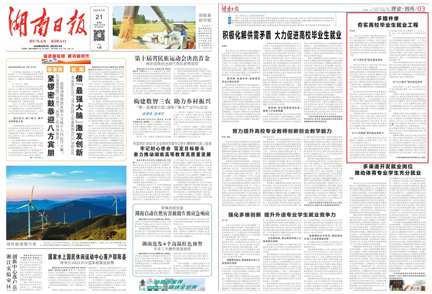 本网讯 8月21日,党委书记曾宝成在湖南日报理论版上发表题为《多措并举 夯实高校毕业生就业工程》的理论文章。
