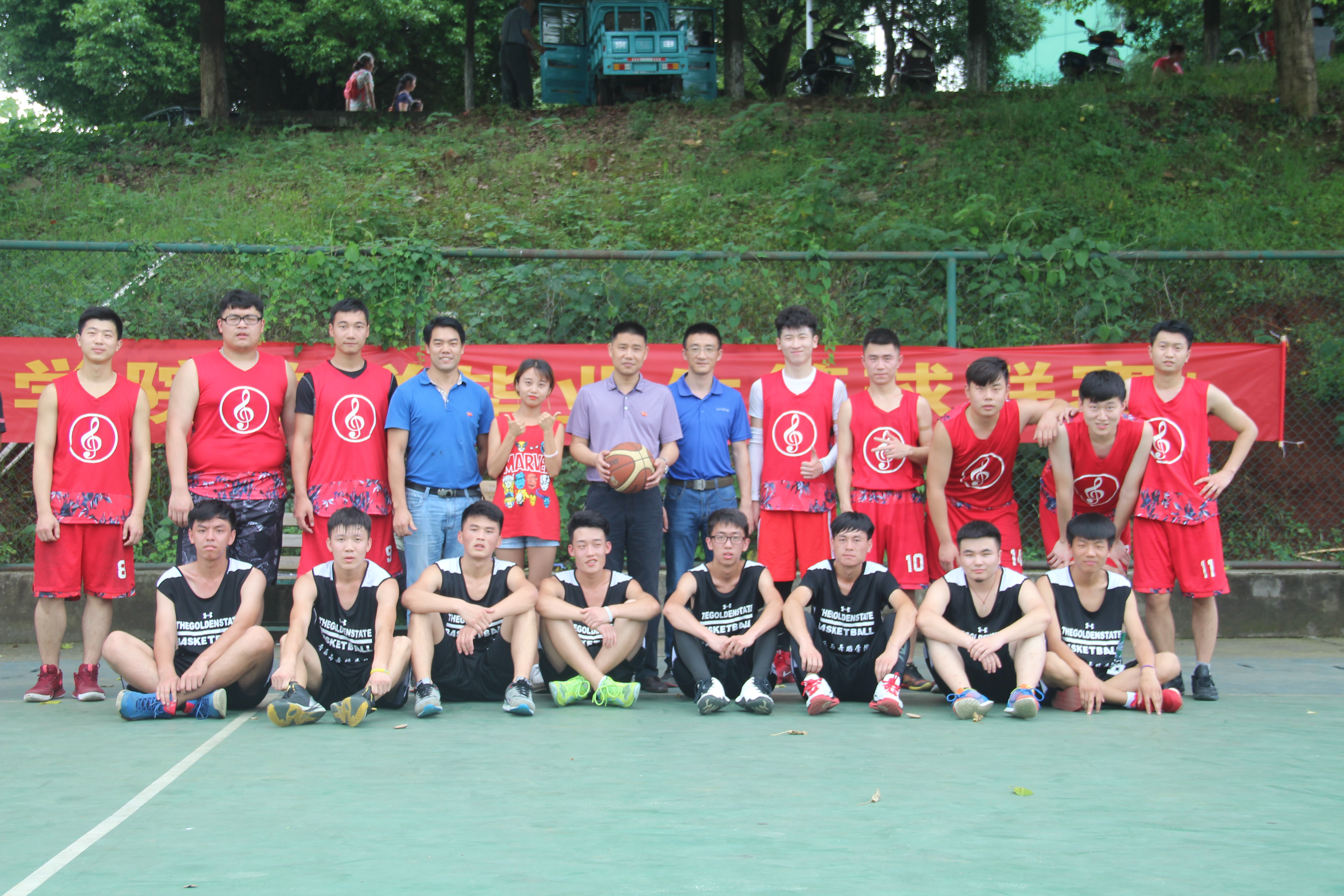 本网讯 5月22日下午,音乐与舞蹈学院欢送毕业生篮球赛在桃园篮球场如期举行,本次比赛时间为5月22日至30日,比赛总共四场,本着友谊第一,比赛第二的原则,分别由三个低年级的年级球队与大四毕业生球队进行切磋交流。首场对阵双方是2013级与2016级年级篮球队,学院党总支书记廖宁杰、副书记蒋磊及全体辅导员都到场为比赛双方鼓劲加油。