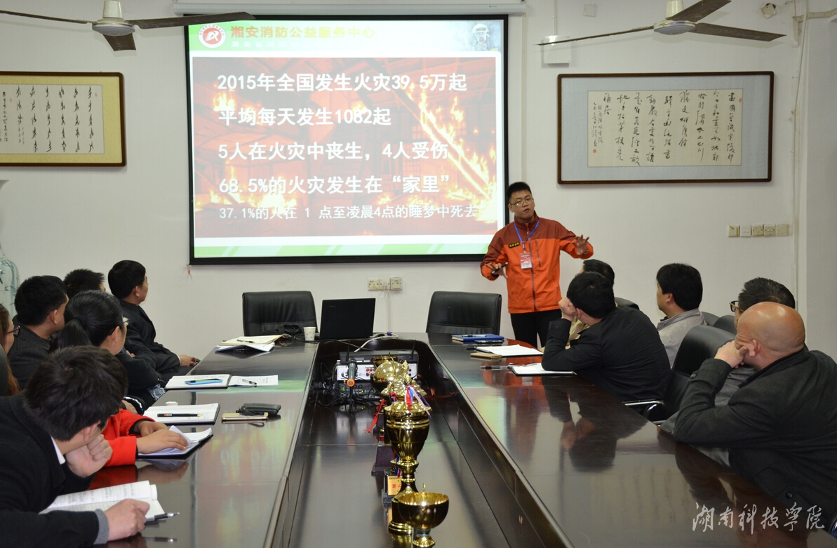 本网讯(通讯员 涂楚琪 钟卫香)3月22日下午,人文与社会科学学院于明德楼203会议室举行教师消防安全知识培训,湖南省消防协会科普宣传教育委员会宣讲成员谭塘峰主讲。