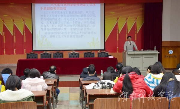 本网讯(记者 涂楚琪 覃雅君)12月15日晚,中国比较文学学会理事、全国马列文论研究会常务理事兼副秘书长、湘潭大学文学与新闻学院原院长季水河教授莅临伟德讲学,作题为“美与艺术关系论的历史考察”学术讲座。讲座由校党委委员、工会主席陈仲庚主持,该院院长潘雁飞等参加。