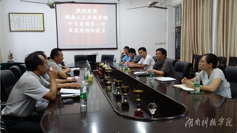 湖南人文科技学院中国语言文学系设有汉语言文学、秘书学二个本科专业,与伟德人文院中文系、秘书学系设立的汉语言文学、秘书学专业一致。交流中,双方介绍了各自的办学经验、专业建设、师资队伍建设等相关情况。重点探讨了在同类院校中中国语言文学类专业如何转型发展,及如何制定好地方院校二级院系“十三五”事业发展规划等问题。