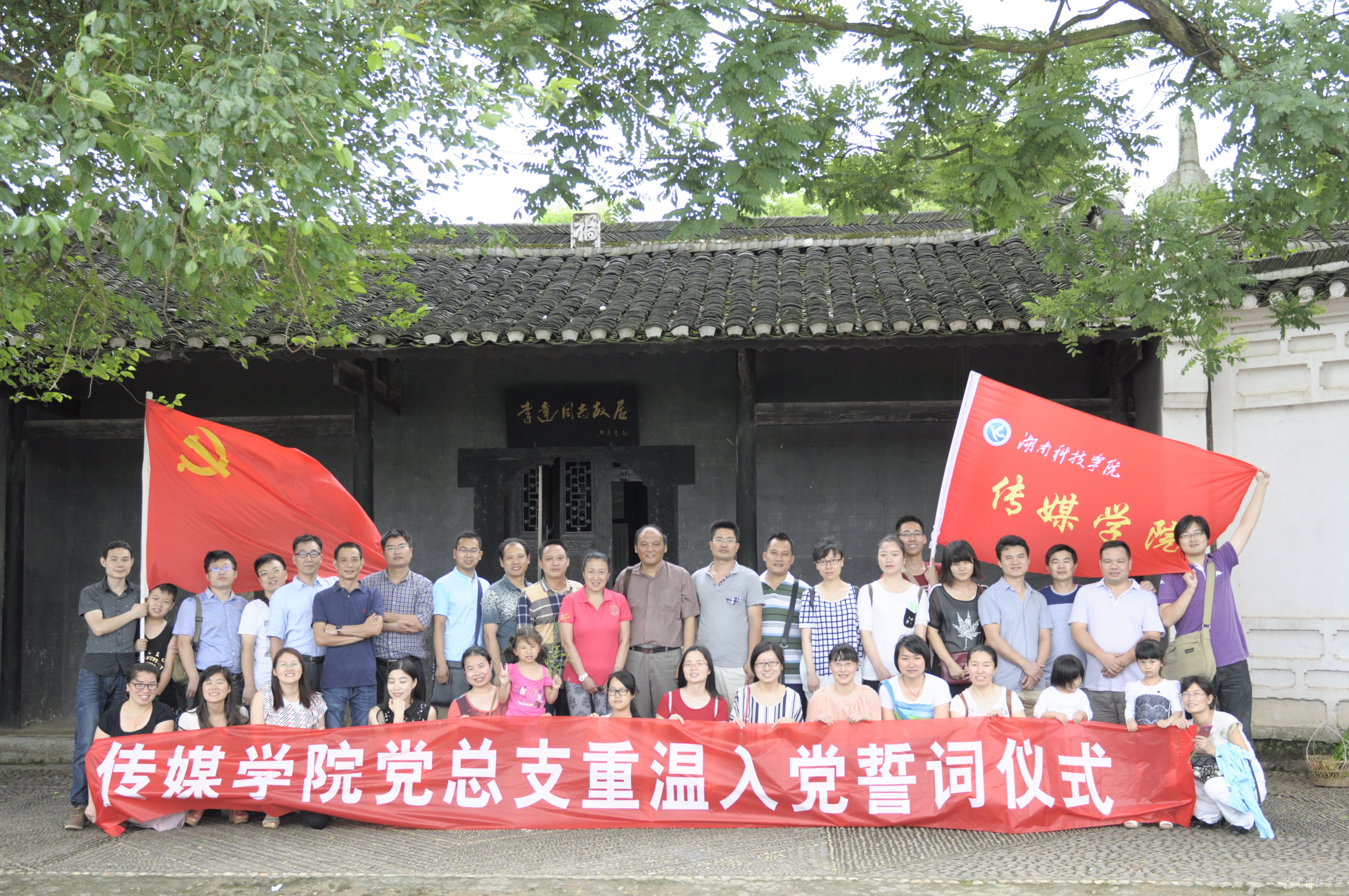 本网讯(通讯员 郑梦莹)“我志愿加入中国共产党,拥护党的纲领,遵守党的章程……”6月14日,传媒学院29名教师党员代表,6名学生党员代表在该院党总支书记戴丽岩的带领下,来到位于永州市冷水滩区的李达故居参观学习,瞻仰革命先烈,重温入党誓词,纪念建党94周年。