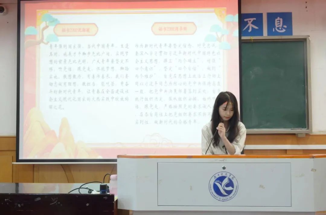 在本次团培课中,张健老师以“感悟青年人的职责使命”为主题,围绕“坚定跟党走、青春就要担责任、承担社会责任、青年要立志做大事”四个方面,对同学们提出“做一名优秀的共青团员”的要求。呼吁同学们不忘初心,坚定步伐跟党走,以实际行动积极投身社会建设,争做一名光荣的优秀共青团员。