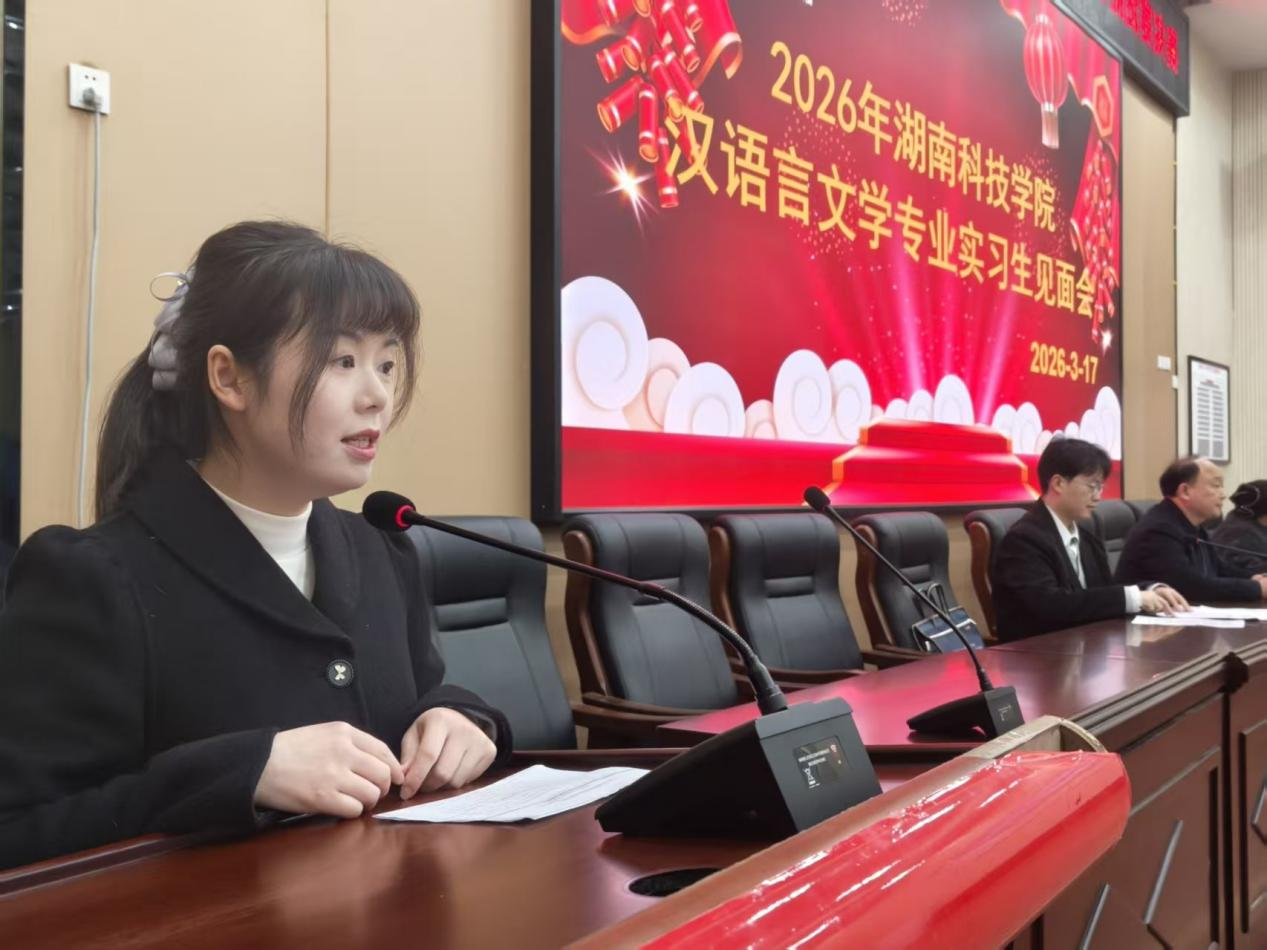 阳春三月,万象更新。为进一步深化校地合作,扎实推进教育实习工作,2026年3月17日上午,伟德源自英国1946汉语言文学专业实习生见面会在永州市第二十中学创新楼会议室隆重举行。本次会议由蒋婷老师主持,永州市第二十中学匡前书记、邓敏娟副校长、邓国毅主任及全体语文老师与湖南科技学院带队指导老师高志鹏及全体实习生齐聚一堂。