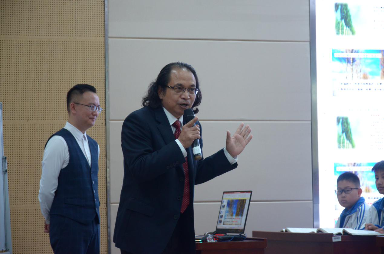 活动第二阶段,陈铿教授分享了“学情视角下的四实语文课堂”讲座。他提出“四实”课堂应遵循“四实三关”的教学方法。“四实”即为“形式朴实、内容扎实、活动充实、学习真实”,“三关”则是关注学生的学习需求,关注学生的思维提升,关注学生的生命成长。通过“四实三关”的教学方法,可以确立“以学生为主体,以老师为主导”的课堂形式,优化课堂生态和课堂教学范式,提升学生学习品质和学习效能,从而推进课堂变革。