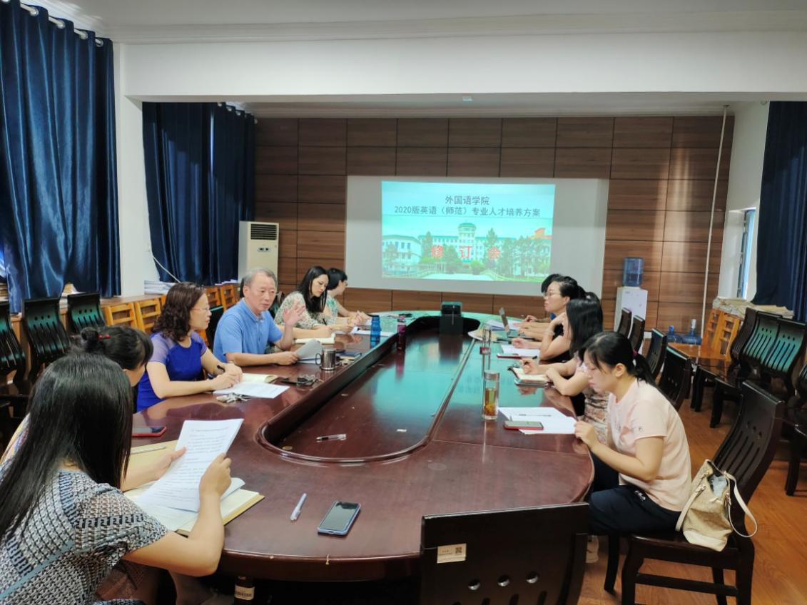 75日,欧华恩院长带领院领导班子及各系主任对《英语(师范)专业人才培养方案》进行了修订,主要就专业课程进行再次论证并微调,调动的课程有:《英语教学理论与实践(I II)》,由原来的第五、六学期调整至第四、五学期;《英语国家社会与文化》,由原来的第三学期调整至第四学期;《英语修辞学》,由原来的第六学期调整至第五学期。